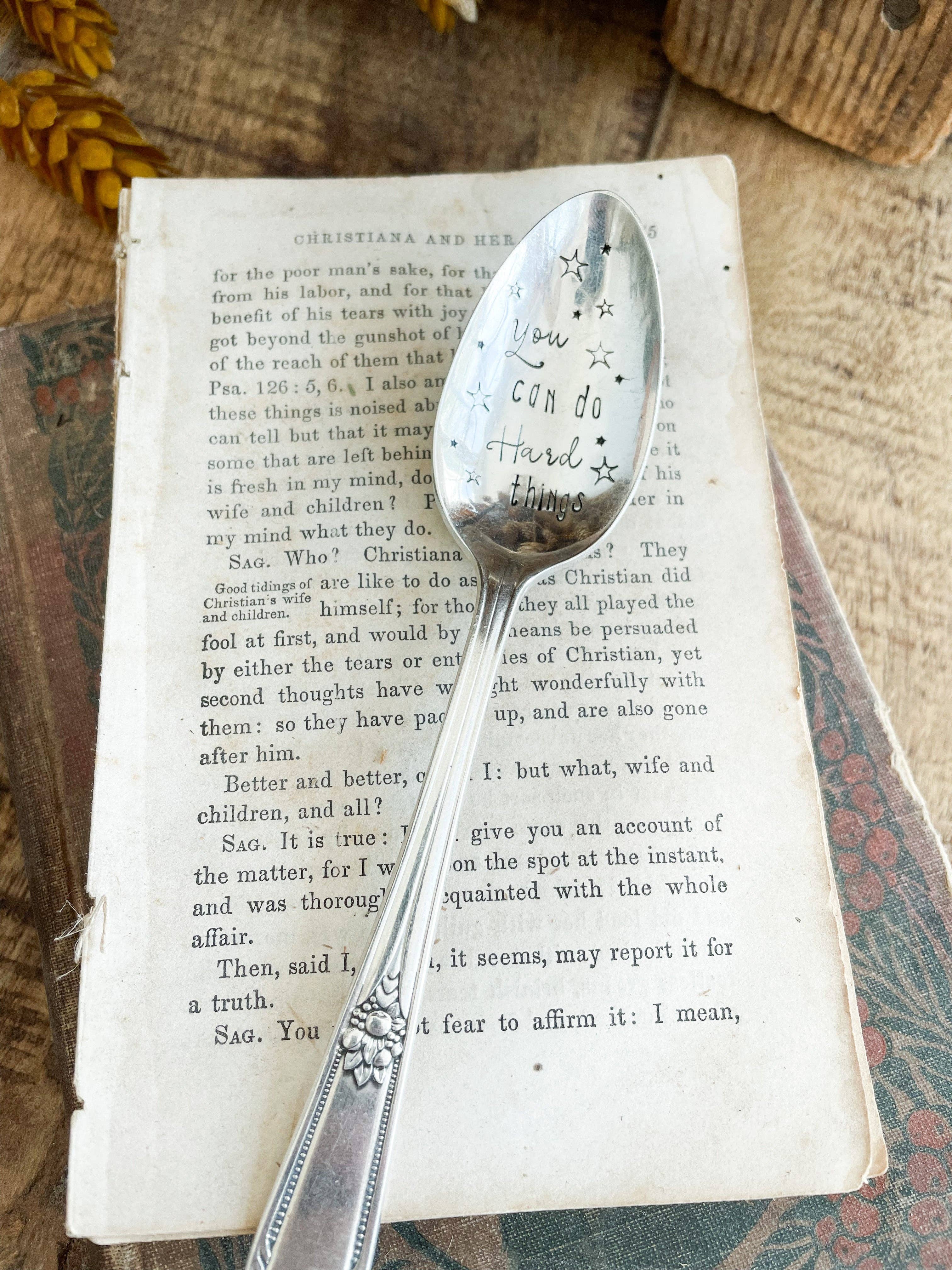 Sassy Barn tar bitar från vårt förflutna och cyklar upp dem för att användas i många år framöver. Inga två bitar av silver är lika, och varje bit är äkta antik/vintage. Vi tar varje bit och skapar roliga konversationsbitar som ska användas när som helst på dygnet och för alla sammankomster. Vi stämplar varje bokstav och varje design för hand.