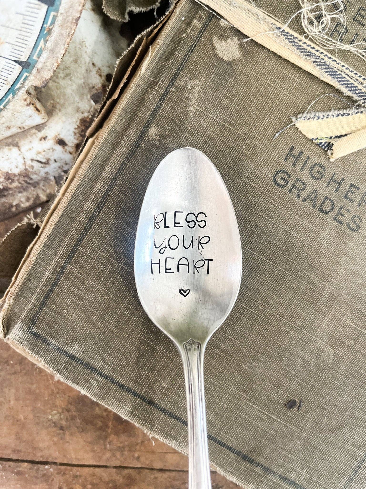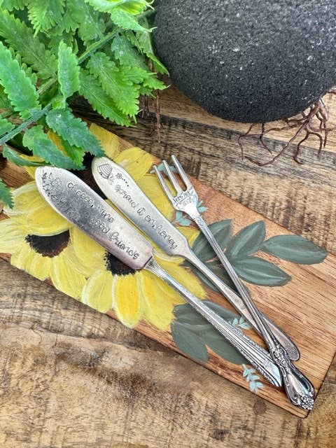Sassy Barn tar bitar från vårt förflutna och cyklar upp dem för att användas i många år framöver. Inga två bitar av silver är lika, och varje bit är äkta antik/vintage. Vi tar varje bit och skapar roliga konversationsbitar som ska användas när som helst på dygnet och för alla sammankomster. Vi stämplar varje bokstav och varje design för hand.
