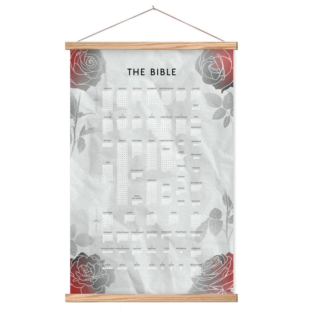 ”Det är genom att hålla fast vid livets ord som jag kan skryta på Kristi dag att jag inte sprang förgäves eller arbete förgäves,” Paul forsar till kyrkan i Filippi eftersom de har, mot alla odds och mot alla utmaningar, klamrade sig fast vid evangeliet genom sina stridigheter. Enligt min mening är det värt att imitera dem som Paul var mest stolt över. Vi strävar efter att hålla fast vid livets ord, precis som Filipparna gjorde för 2000 år sen. Vi älskar Bibeln. Vi älskar att kunna spåra våra framsteg under alla omständigheter, och vi älskar trevlig väggkonst. Genom att kombinera alla tre föddes Bibelaffischen. Oavsett om du bara vill se Bibeln utskriven i sin helhet på din vägg, eller om du vill göra det vi gör, och markera dina framsteg när du läser igenom Bibeln varje år, är vi hedrade att du skulle överväga Bibelaffischen. Tacksam för dig, Chris och Jennie Barry Dina medarbetare i Kristus