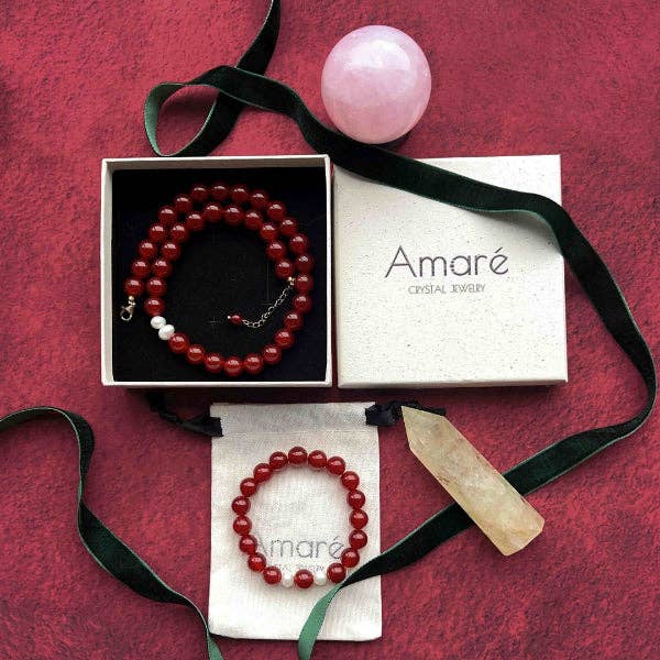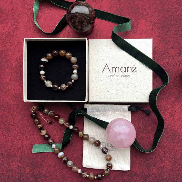 På Amaré börjar varje smycke med avsikt. Vi är ett internationellt team baserat i Danmark som skapar handgjorda kristallsmycken som blandar skandinavisk minimalism med ädelstenarnas naturliga energi. Varje smycke är noggrant handgjort i våra ateljéer i Danmark och Shanghai, där vi kombinerar genomtänkt design med medvetet hantverk. Varje skapelse görs i små partier, långsamt tillverkade med kärlek, omsorg och syfte. Designade för att inspirera till självförtroende, lugn och självkärlek, förvandlar våra smycken vardagliga stunder till tysta påminnelser om styrka och balans. Från lugnande ametist till stärkande tigeröga, väljs Amaré-kristaller för sin skönhet och betydelse, skapade för kvinnor som värdesätter medvetenhet, elegans och avsikt i varje detalj.