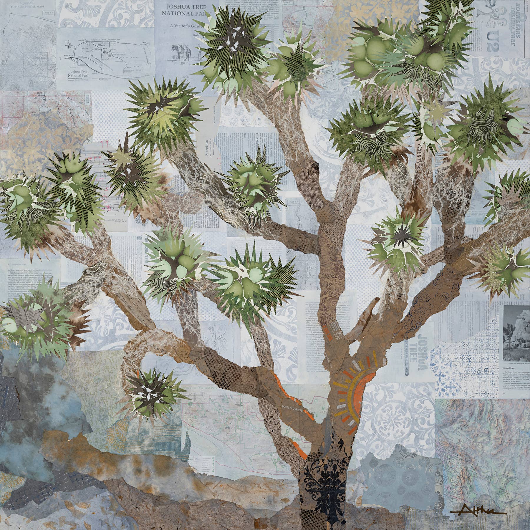 Hej och välkommen till min Art Althea collage studio! Jag heter Althea Sassman och jag är en samtida ökenkonstnär som kombinerar lager av färg, mönster och textur för att skapa spännande konstverk helt från sönderrivet papperscollage. Handgjorda, handmålade och återvunna papper blandas med betydande text från gamla böcker, vintage frimärken och tidlösa noter. Varje originalcollage inspirerades och skapades från min hemmastudio vid ökenfoten av Arizona och tack vare dig finns de nu tillgängliga som tryck i begränsad upplaga för resor över USA och bortom! Art Althea giclées ('jee-clays) är bläckstråletryck av arkivkvalitet, konstreproduktion från en professionellt fotograferad högupplöst digital fil på premium konstnärspapper. Två storleksalternativ finns tillgängliga och kan inkludera matta i vitt för bekväm inramning av standardstorlek. Varje bit är signerad, betitlad och numrerad innan den förpackas individuellt och skickas direkt till dig.