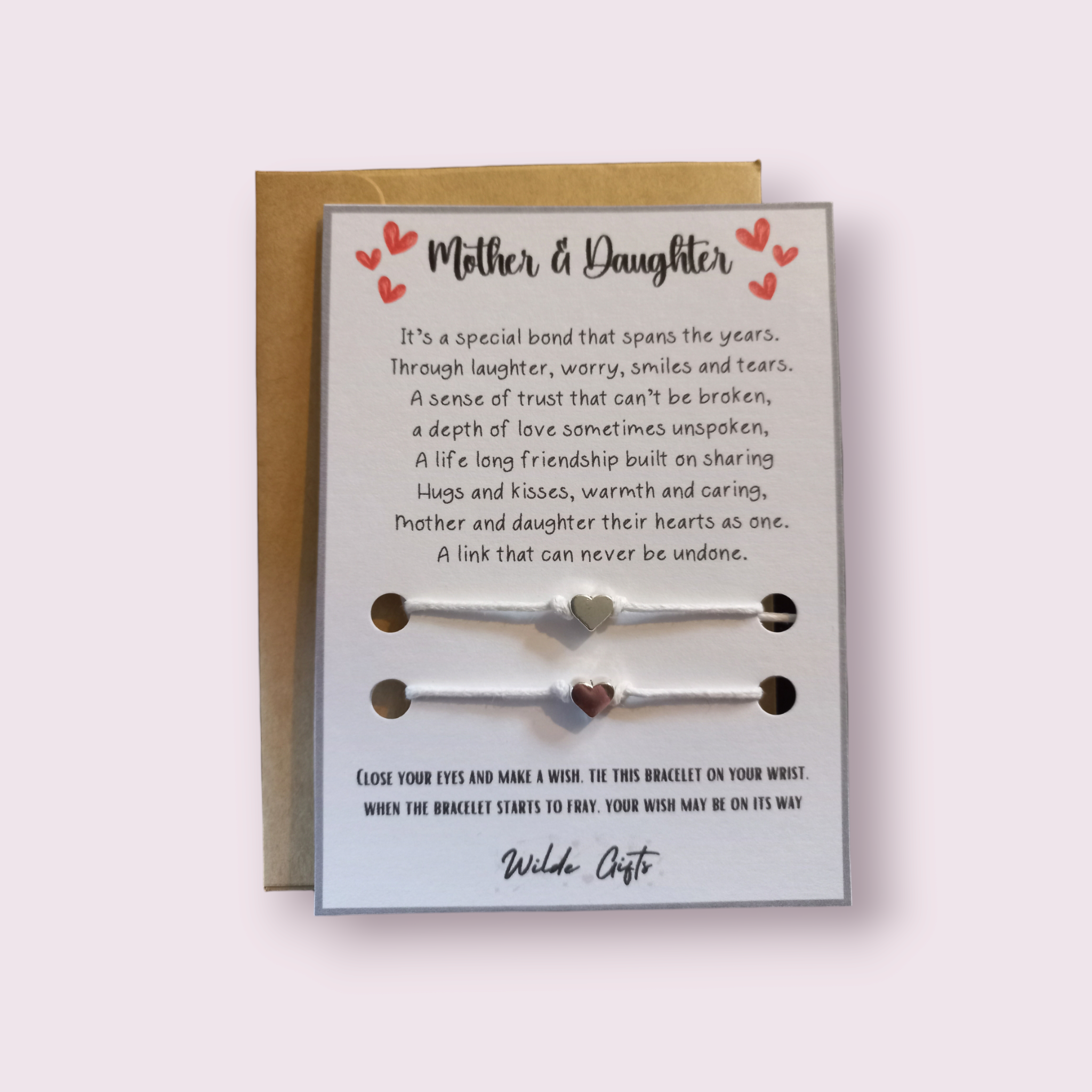 Vi är ett gift par från Pembrokeshire i västra Wales. Vi började med att skapa drömfångare 2017 och har sedan dess provat på många olika hantverk, som man gör när man får hantverksfeber. Vi njuter verkligen av utmaningen att komma på nya spännande idéer för våra produkter, särskilt när vi deltar i ett hantverksevenemang i vårt närområde! När det gäller affärer strävar vi alltid efter kvalitet, vilket är anledningen till att vi bara använder 300gsm-kort för vårt sortiment av önskearmband, kvalitetsvaxad bomullssnöre och lägger så mycket tid och uppmärksamhet på allt vi gör. Vi skapar för närvarande många brevlådegåvor för alla tillfällen och lägger ständigt till vårt sortiment. Vi accepterar också specialbeställningar, så om du har en viss design i åtanke, skicka oss ett meddelande så kan vi hjälpa till. Tack för att du tittade förbi! Troy och Sonia Wilde Wilde Gifts