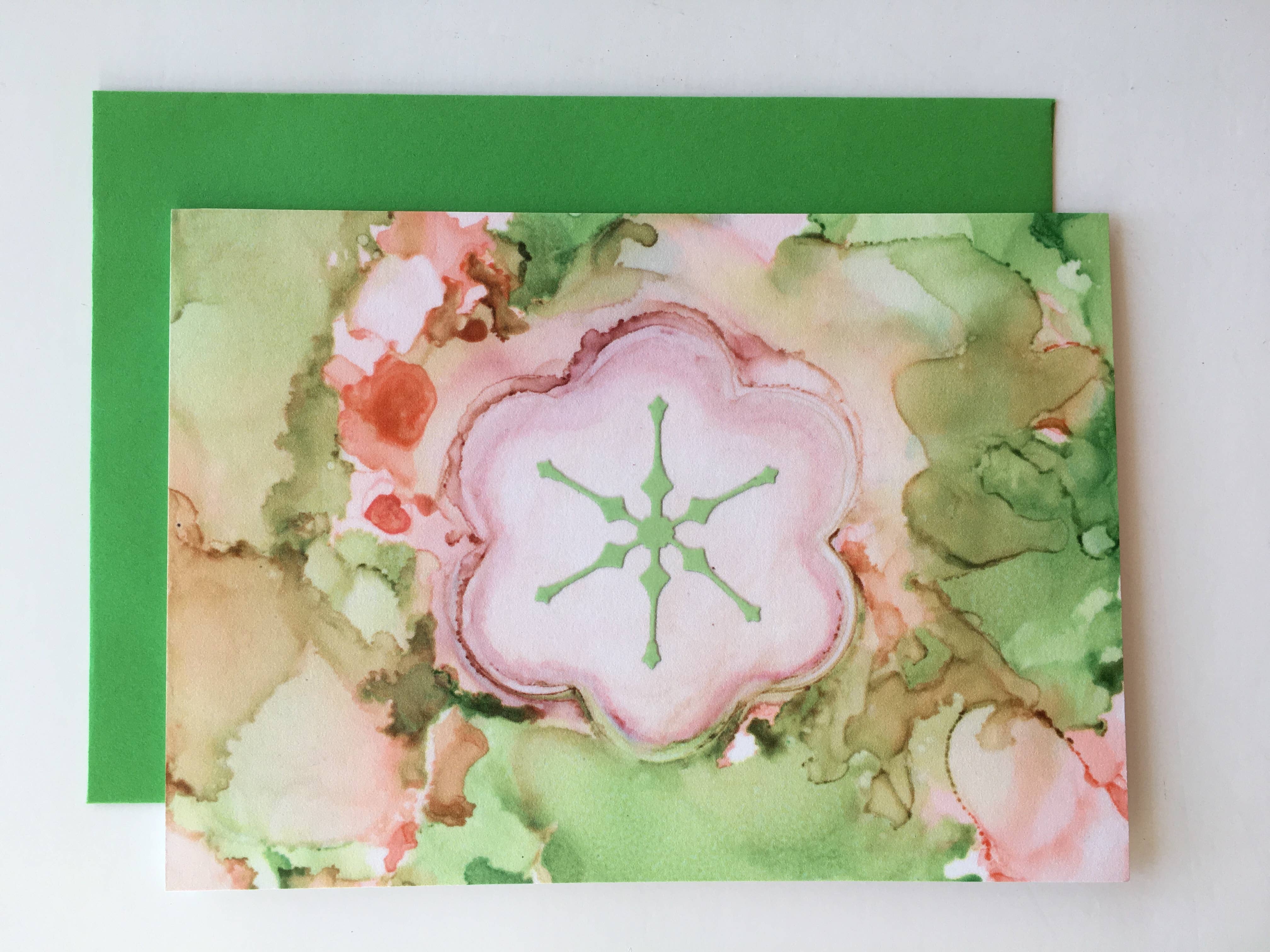 Jag växte upp i den västra förorten Chicago, Glen Ellyn, Illinois, jag fick en ungkarl i konsthistoria från Loyola University, Chicago, där jag blev kär i konst och historia under ett år när jag studerade vid Loyola University i Rom, Italien. Jag har designat och målat för kunder i USA och Irland. Efter att ha uppfostrat en familj tog jag chansen att starta mitt nya företag i San Diego, Kalifornien. En dröm som går i uppfyllelse. Hälsningskort som konstverk. När jag studerade medier att använda i mina kort kom jag över Alcohol Ink. Bläcket skapar en magisk eterisk design. Det är en lång beskrivning. Mediet var precis vad jag hade letat efter. Det är en blandning av Alkoholbläck och isopropylalkohol. Konsten är graciös, färgerna djärva, och resten är historia. Jag tror att korten du får är värda att rama in! Du behöver inte lämna in dem eller kasta bort dem som du skulle göra med så många andra! De är konstverk som är avsedda att delas. Jag hoppas att du kommer att älska mitt konstverk lika mycket som jag gör. Tveka inte att ge mig ett skrik. Jag vill gärna höra dina tankar och historier om dessa kort. Visa oss också att inramade kort eller skriva ut! Rama in den. - Arkivera den inte!