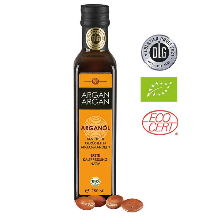 Det rättvisa, sociala och hållbara Arganargan-projektet: Arganargan grundades i Tyskland 2011 för att bevara den ursprungliga arganoljan, som också har varit UNESCO skyddad sedan 2015, av en av de mest värdefulla livsmedel i sin originalitet. Med vårt arbete stöder vi kvinnokooperativ (producenter) i arganeraie (UNESCO biosfärreservat i sydvästra Marocko) i deras ansträngningar att bevara den traditionella produktionen av arganolja och det unika kulturlandskapet av arganträd, Köpet av ARGANARGAN säkrar Berberfamiljernas inkomst och stöder upprätthållandet av sociala strukturer i regionen. Den speciella kvaliteten på ARGANARGAN testas årligen av DLG — German Food Society och tilldelas den högsta DLG-GOLD-utmärkelsen. ARGANARGAN är vinnaren i ”pris-performance” jämfört med andra arganoljor. (vergleich.org)