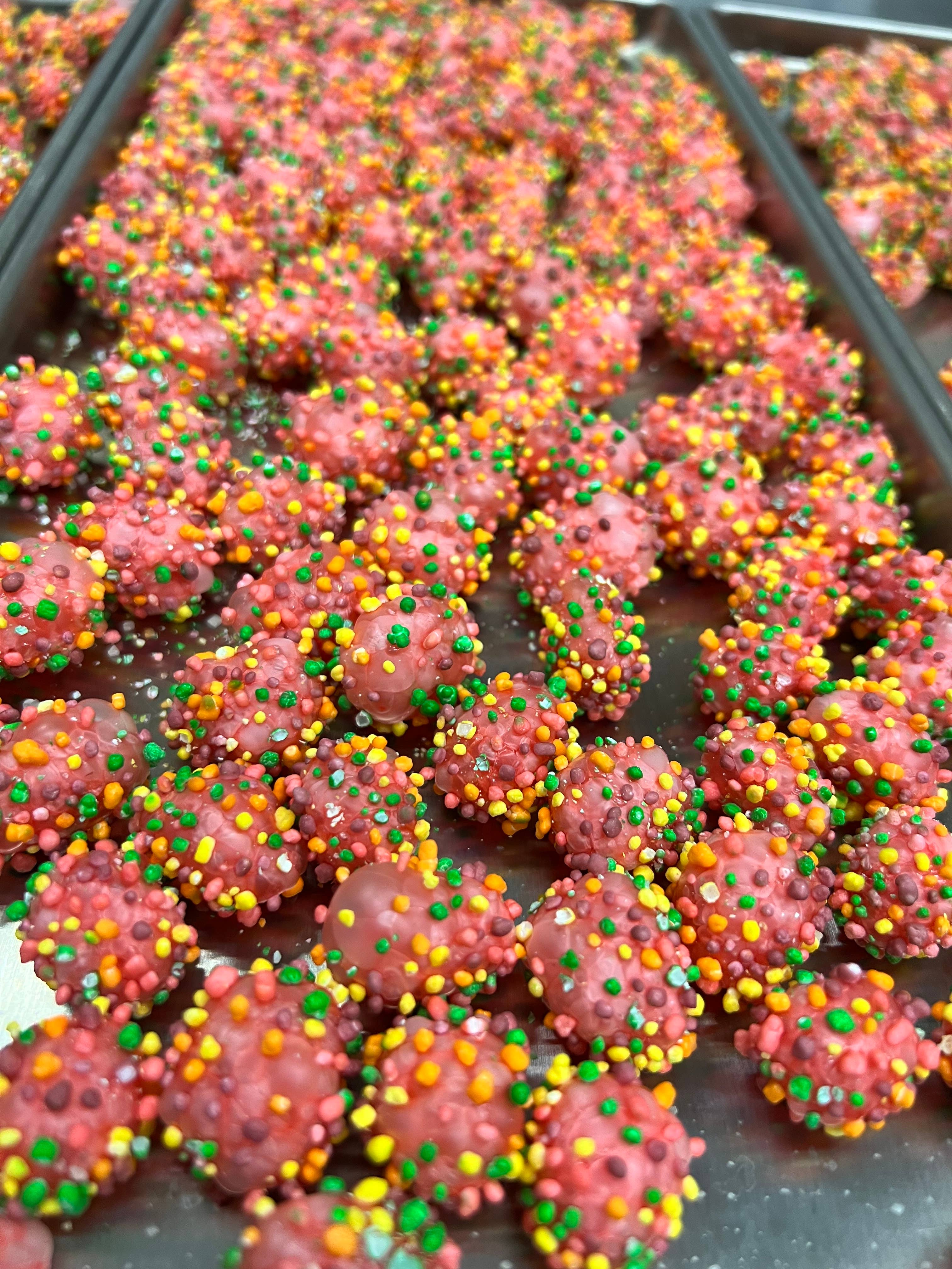 Vi är ett familjeägt företag. Vi trivs med att ta med det allra bästa frystorkade godiset till marknaden. Vi lagar mat på beställning och skickar ut det så snart som möjligt. Vi har en ledtid på 4-7 dagar, men vi får normalt ut det mycket tidigare. Vi trivs för perfektion på alla våra produkter för att komma till dig och redo att sälja. Om ett föremål är skadat, vänligen kontakta oss på messenger så löser vi eventuella problem ASAP. Nya artiklar testas dagligen. Ha en söt dag! Vi tackar dig för att du valde oss och vårt familjeföretag och välkomnar dig till vår familj också. #WEAREPEAVINECANDYFACTORY