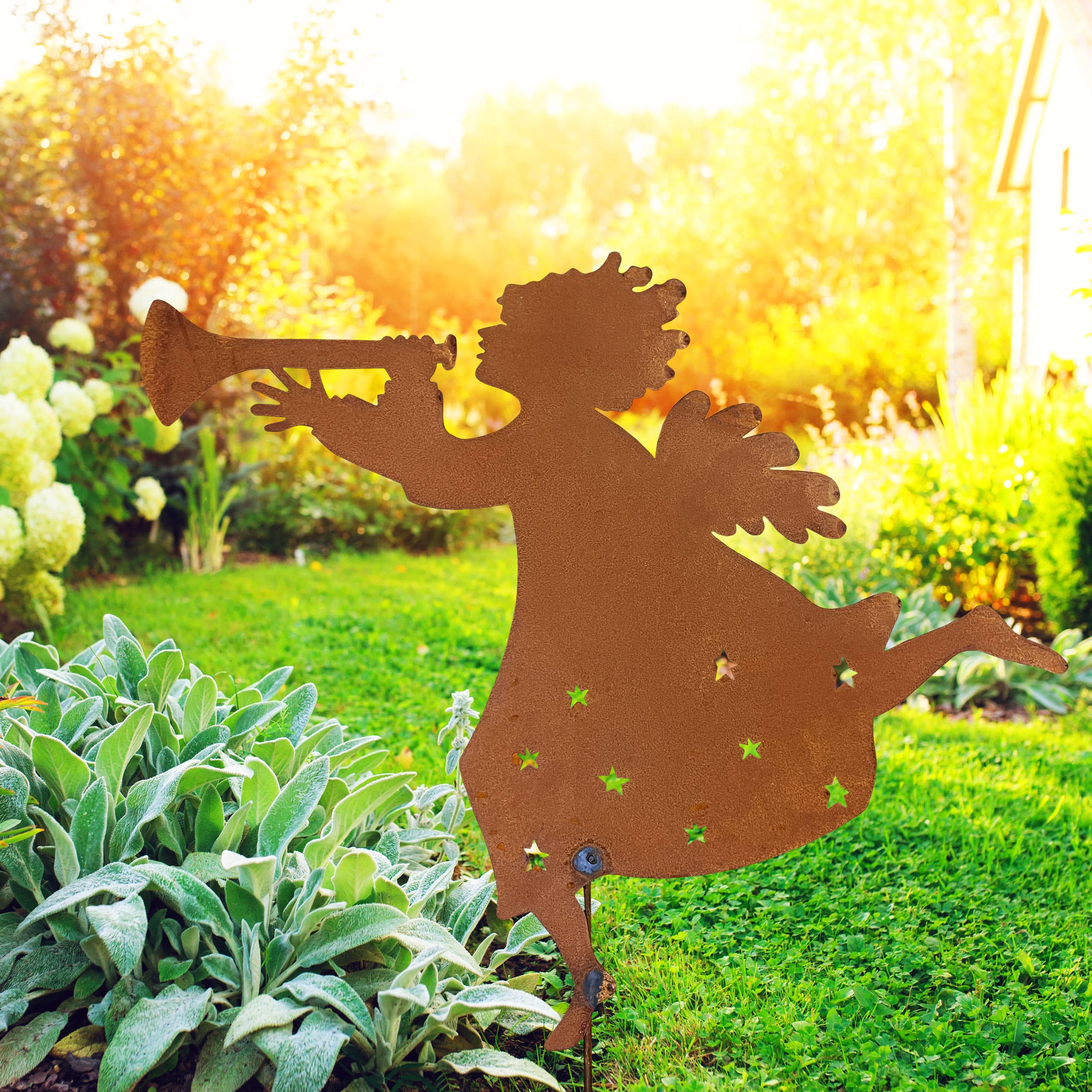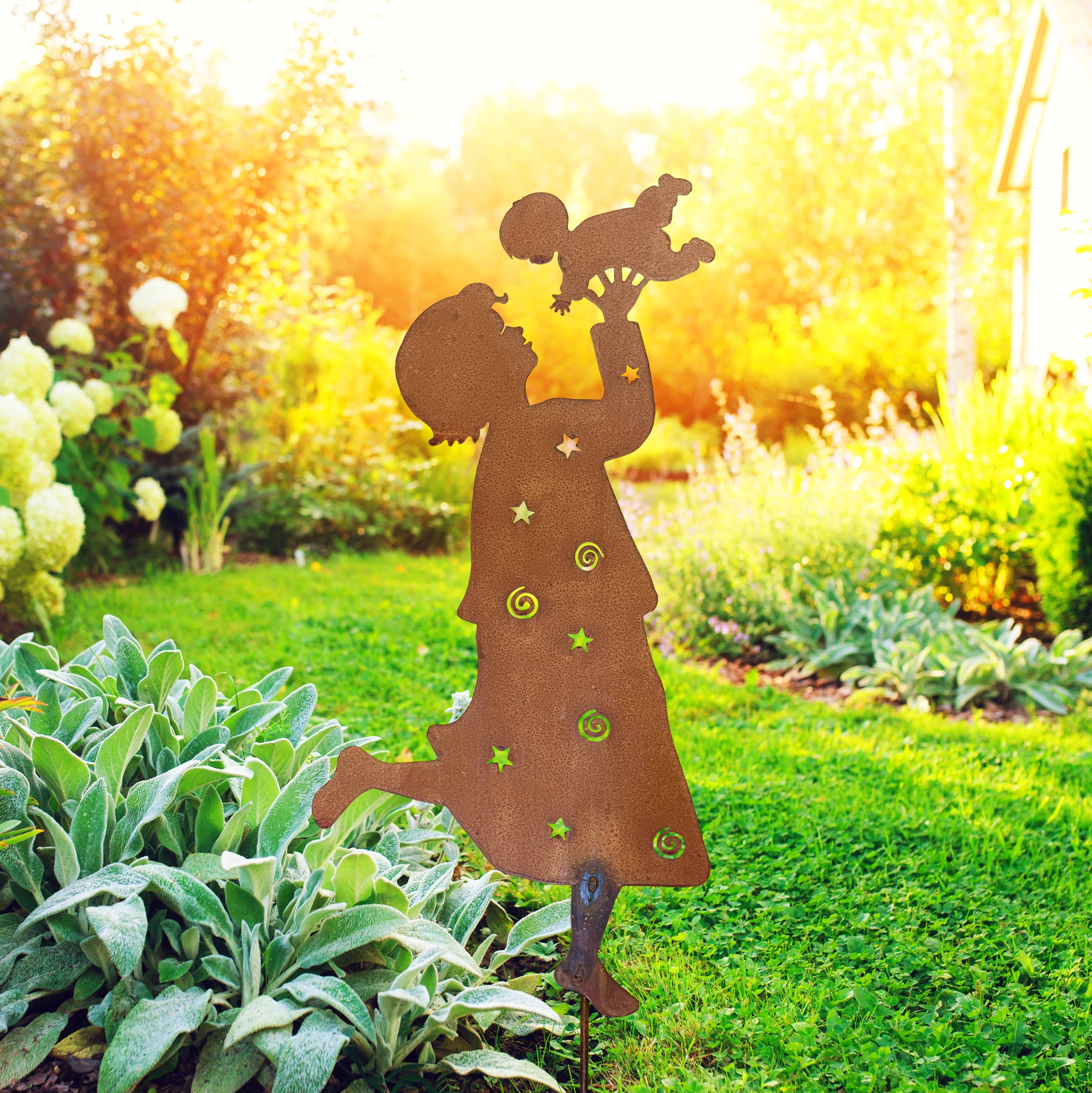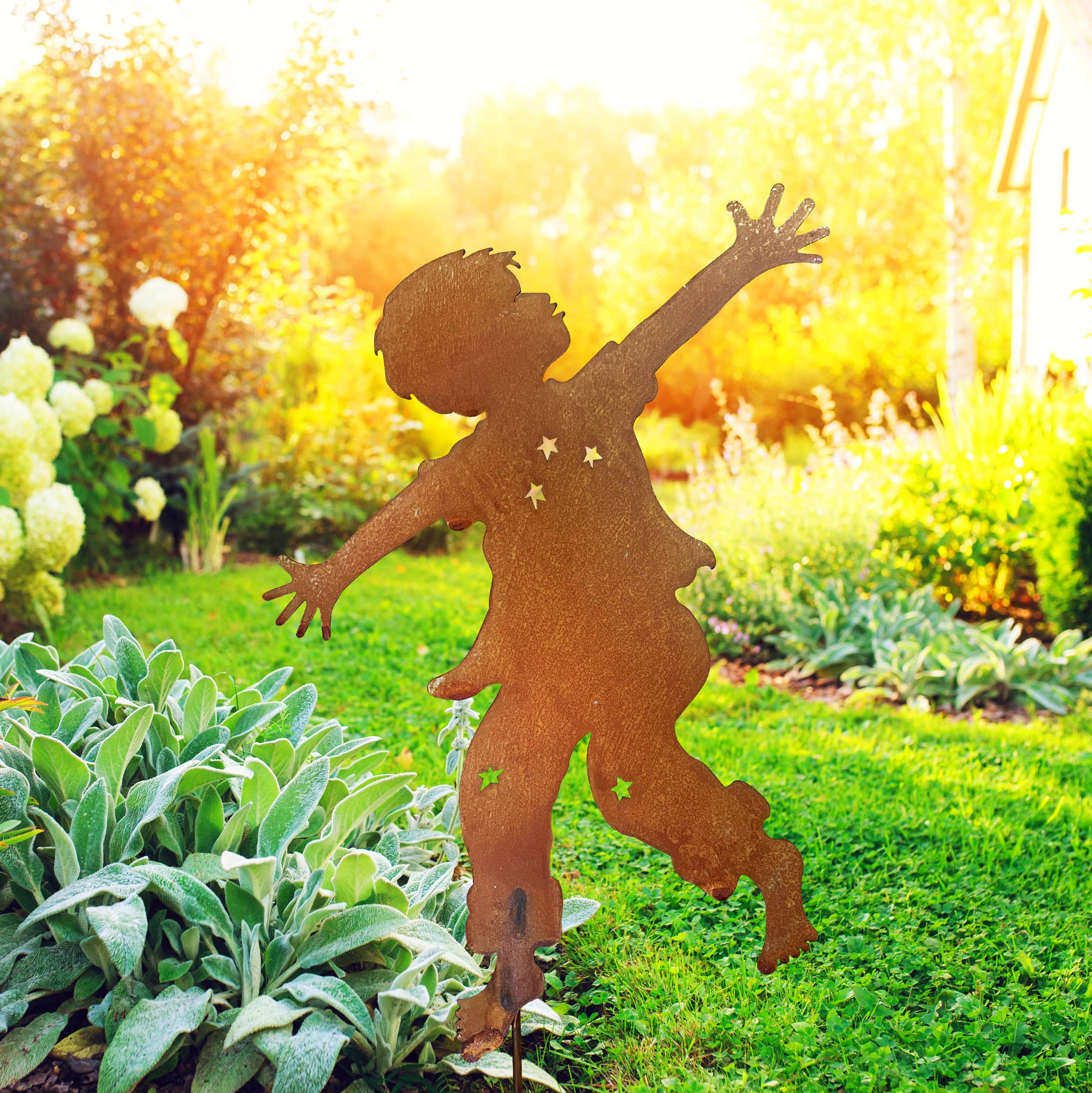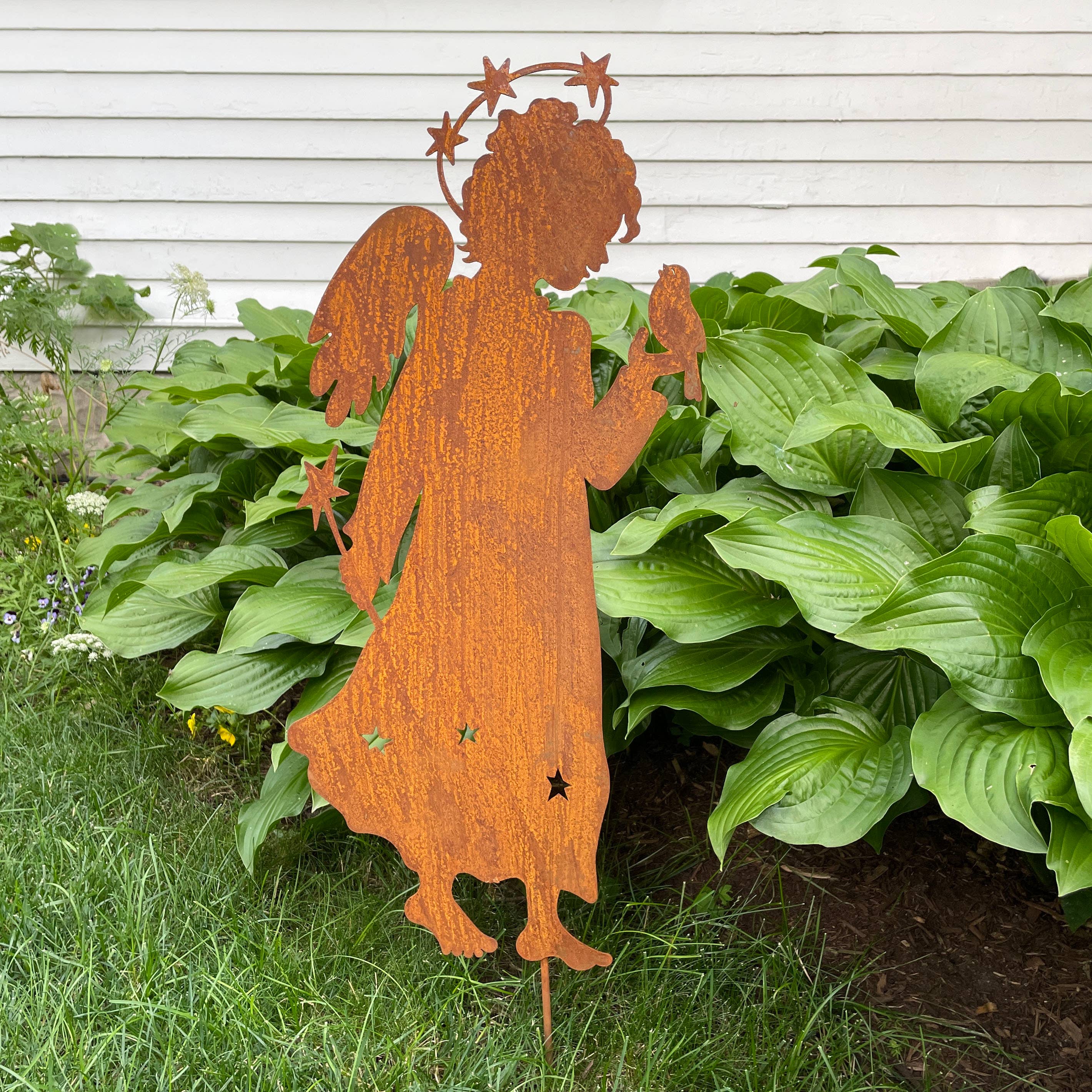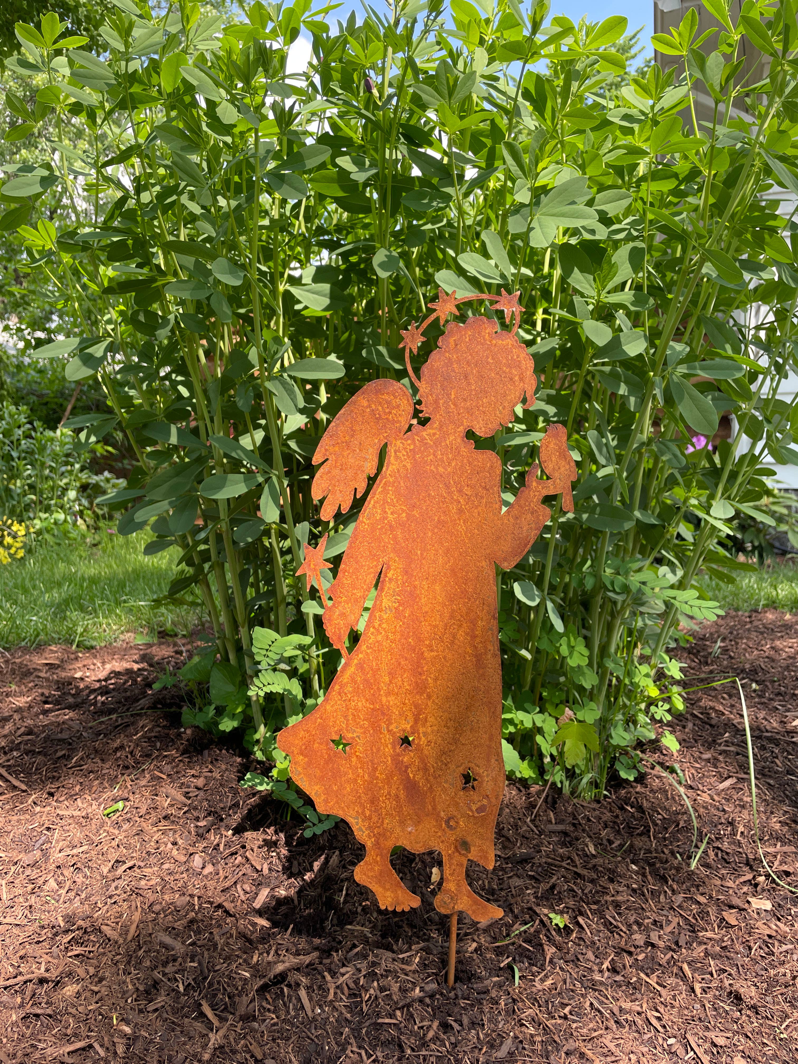 Carol Roedas Songs of Joy trädgårdsdekorationer är perfekta för utomhusdekoration året runt. Dessa bestående designer ger glädje och hopp till oss alla, inklusive de som hedrar livets viktigaste milstolpar, från glädjefyllda bröllop till svåra förluster. Den rostiga patinan kommer att fortsätta utvecklas över tid. På grund av det organiska och naturliga sättet denna finish utvecklas, kommer varje stake att vara unik. Den rostiga finishen kommer att fortsätta utvecklas och fördjupas över tid, i samarbete med naturen för att skapa ett ständigt utvecklande konstverk. Tillverkad i Michigan, USA.