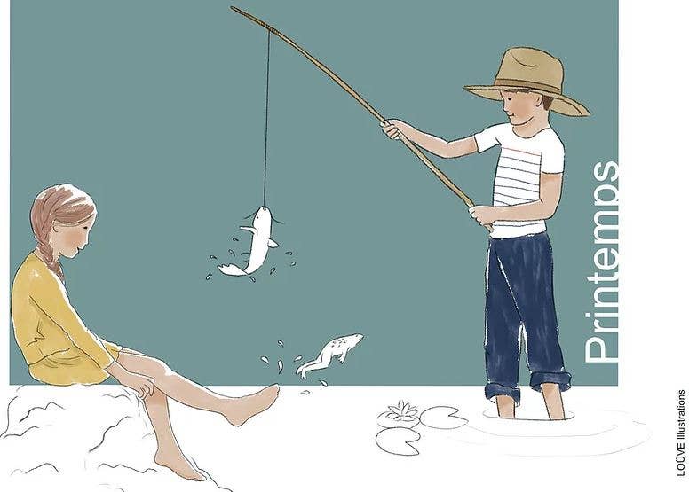 Loüve-illustrationer är först och främst en berättelse som börjar i Provence. Jag är ett middagsbarn, jag lärde mig akvarell av min mormor. Mitt universum är inspirerat av det som omger mig: natur, familj, barndom... Alla mina skapelser har sitt ursprung i Var och trycks i Frankrike med respekt för miljön.