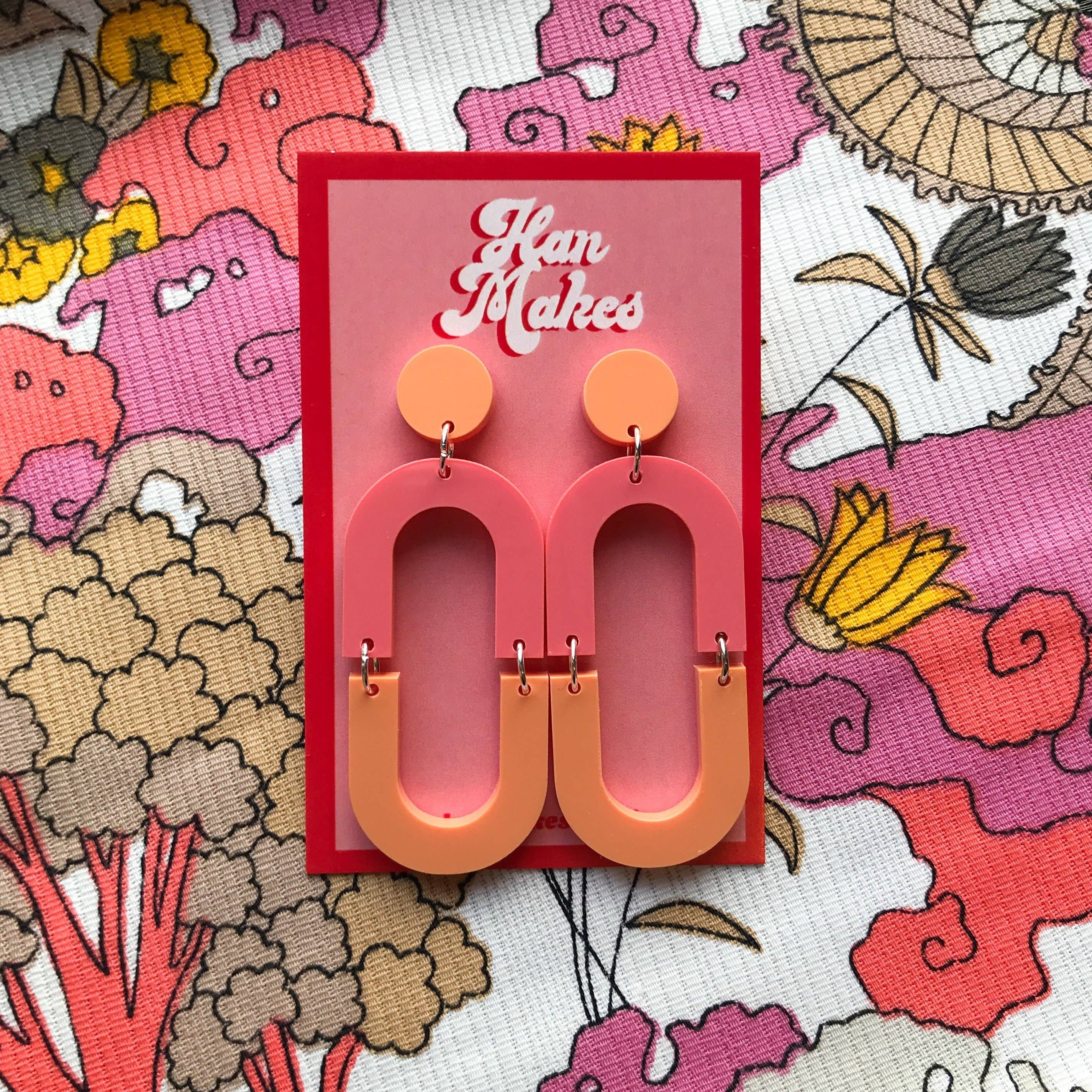 Han Makes är ett självständigt smyckemärke som startades av Han (Hannah) i slutet av sitt första år på universitetet. Tre år senare har Han tagit examen men Han Makes är fortfarande här! Och syftet är fortfarande att ge högkvalitativa, djärva laserskurna smycken till rimliga priser. Med fokus på ljusa färger och grundläggande former med lite inspiration från 60-talet är varje par Han Makes örhängen lätta, iögonfallande men ändå bärbara! Han Makes fortsätter att drivas enbart av Hannah, och är baserat i Leeds, Storbritannien.