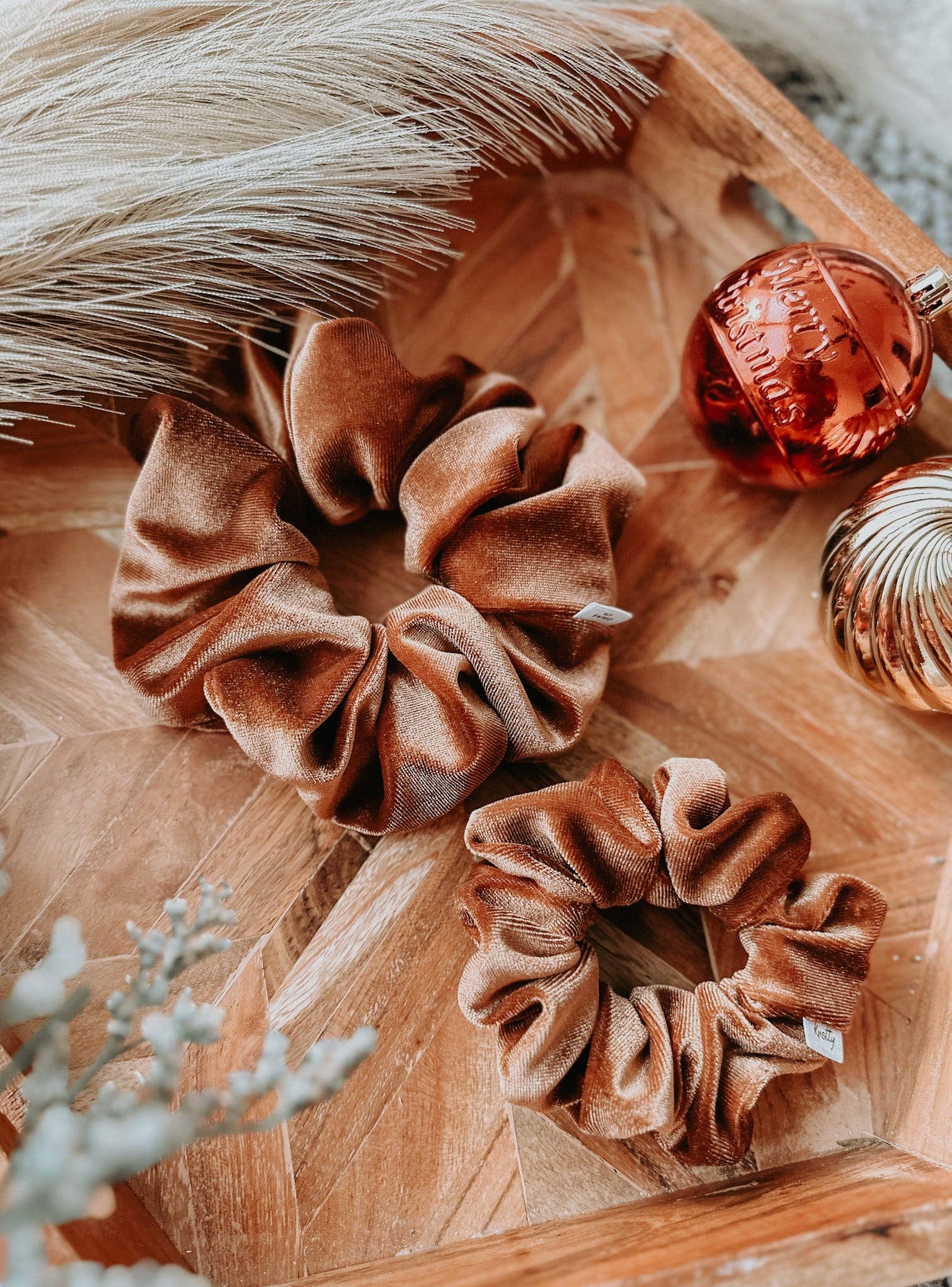 Knotty But Sweet startade strax efter pandemin, när arbete hemifrån blev det nya normala. Jag tillbringade timmar i virtuella möten och satte alltid upp håret i en knut - tills jag började få dagliga huvudvärk från strama, obekväma hårband. Ungefär vid den tiden köpte jag en symaskin och en broderimaskin för att börja med en ny hobby. Broderidelen skrämde mig, så jag började smått genom att göra en scrunchie till mig själv. Den där scrunchien förändrade allt! Min huvudvärk försvann, och jag blev snabbt besatt av att skapa den perfekta scrunchien. Efter att ha delat dem med vänner (som också älskade dem direkt) föddes Knotty But Sweet. Under de senaste åren har jag deltagit i otaliga marknader i person, spridit min kärlek för bekväma, söta scrunchies och till slut övervunnit min rädsla för broderi för att expandera till skräddarsydda broderade scrunchies och kläder. Att driva Knotty But Sweet samtidigt som jag jonglerar med mitt heltidsjobb har inte varit lätt, men varje vänligt ord från en kund, varje bekant ansikte på en marknad och varje ny kontakt påminner mig om varför jag började. Idag är jag så stolt över att driva KBS tillsammans med min underbara man, Joe, som hjälper till med att sy våra scrunchies, köra broderimaskinerna, ställa upp på marknader när jag av misstag dubbelbokar (oops) och mer! Vi kan inte tacka våra kunder nog för allt ert stöd♥️