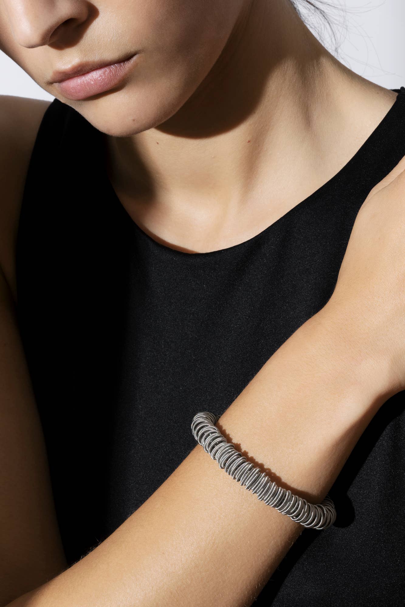 I februari 1987 besökte Tiziana Redavid, en arkitekturstudent, fabriken hos en vän, en tillverkare av industriella källor. Marken är fylld med dem. Den unga italienska kvinnan plockar upp dem vid dussintals, sätter dem på handleden. ”Molla” på italienska betyder ”vår”. Tiziana Redavid registrerar varumärket La Mollla® med 3 L för att grafiskt framkalla vårens rörelse. Så 1997, uppmanad av hennes mentor Jean Nouvel, lanserade hon det ikoniska armbandet ”97". Från och med det ögonblicket kommer hon att fortsätta att forma detta material och kontinuerligt skapa nya former...