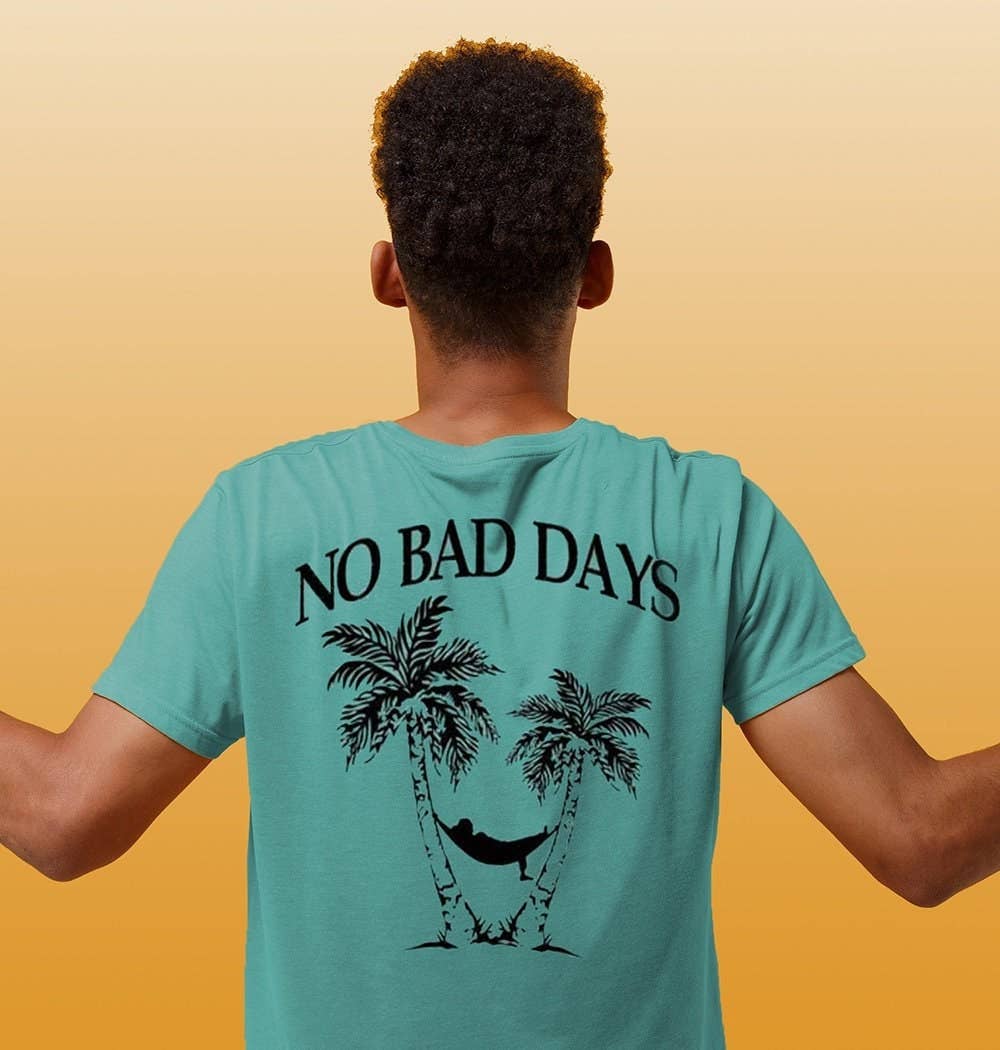 NO BAD DAYS® är ett livsstils- och resortvarumärke som främjar en positiv attityd och syn. No Bad Days är per definition ”ett varumärke” men för tusentals är det ett mantra, ett motto och en påminnelse om att få varje dag att räknas. Vid stranden sedan 1986 har vi förespråkat att göra det du älskar och älska det du gör. Våra tröjor är tryckta internt i soliga södra Kalifornien, med miljövänligt vattenbaserat bläck. Våra baja-hoodies är gjorda av återvunna t-shirtar inklusive våra unika halsetiketter. NO BAD DAYS® är ett registrerat varumärke som tillhör No Bad Days Enterprises, Incorporated, som också innehar alla (IP) immateriella rättigheter till orden och frasen.