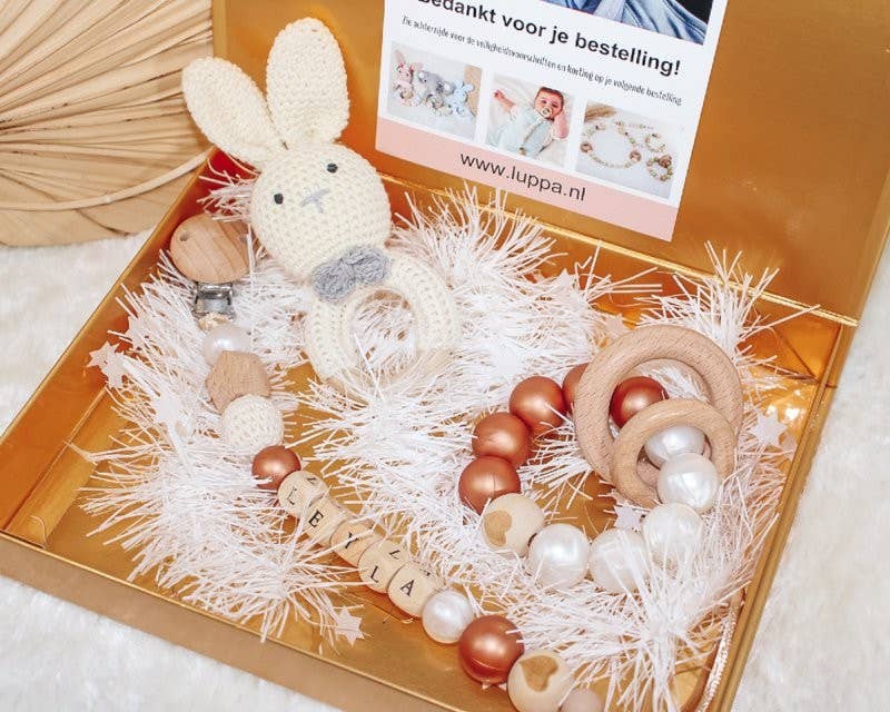 Luppa specialiserar sig på att leverera baby- och barntillbehör. Vi ser till att vårt erbjudande är av hög kvalitet till ett konkurrenskraftigt pris, förstås. Säkerheten för ditt barn är av största vikt här, varför vi arbetar med hållbara produkter. Vår specialitet är att tillverka handgjorda produkter, såsom en bitring, nappsladd och bilspännare. Det finns också olika andra tillbehör som: tallrikar och haklappar. Ta en titt på vår butik, om det finns några frågor, vi kommer gärna att komma i kontakt med dig.