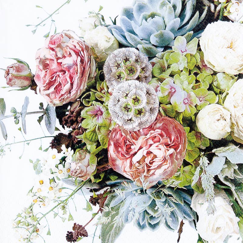 Rosenbukett Carlotta, 5 blommor, L40cm, Vit