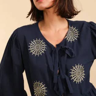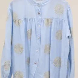 Denna skjorta med volangdetaljer är ett elegant och sofistikerat plagg, perfekt för att tillföra en feminin och dynamisk touch till din outfit. Detaljer om skjortan: - Material i linne: Naturligt, luftigt och bekvämt att bära. - Flytande och lätt lös passform: Ger komfort och fri rörelse. - Rund halsringning med volang: Ger en förfinad och romantisk känsla vid halsen. - Volang längs knappslån: Ett utmärkande inslag som tillför volym och en elegant look. - Knäppning fram: Gör det möjligt att justera passformen efter önskemål. - Långa puffärmar med rynkade manschetter: Framkallar en luftig och sofistikerad effekt. ONE SIZE (38-42) Modellen är 1,71 m lång PRODUKT TILLVERKAD I ITALIEN