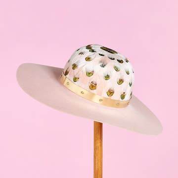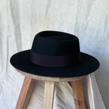 Gör ett elegant uttalande med denna anpassade breda brädhatt! Tillverkad av en ullblandning och med ett anpassat pärlband kommer du säkert att väcka uppmärksamhet vart du än går. Dimensioner: 3,54" styv kant 5" krona 22 ”till 24" inre justerbar omkrets *Bältesmontering krävs*