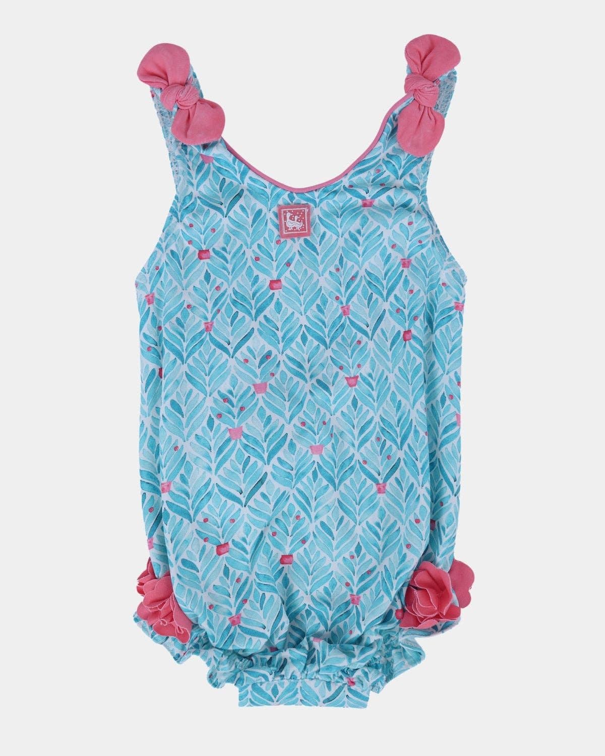 Din lilla kan leka i solen säkert i denna långärmade babysoldräkt prydd med ett charmigt tusenskönadstryck och lekfulla axelvolanger. Den praktiska dragkedjan på baksidan gör det enkelt att klä på, medan de råkantade krusidullerna ger en touch av nyckfullhet till detta viktiga plagg för solfyllda äventyr.