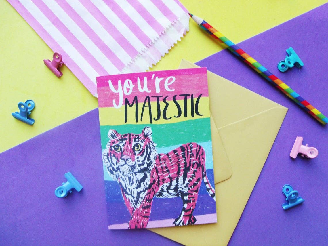350gsm gratulationskort tryckt på återvunnet papper. Det är tomt inuti så att du kan skapa ditt eget meddelande. Kan skickas naken med en skalbar kortfångarklister eller med en komposterbar väska.