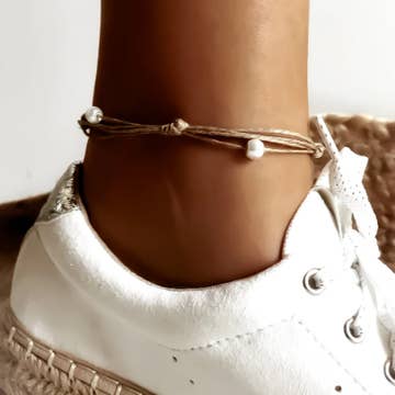 Dubbel Fotlänk med Pärlor och Marina Berlocker