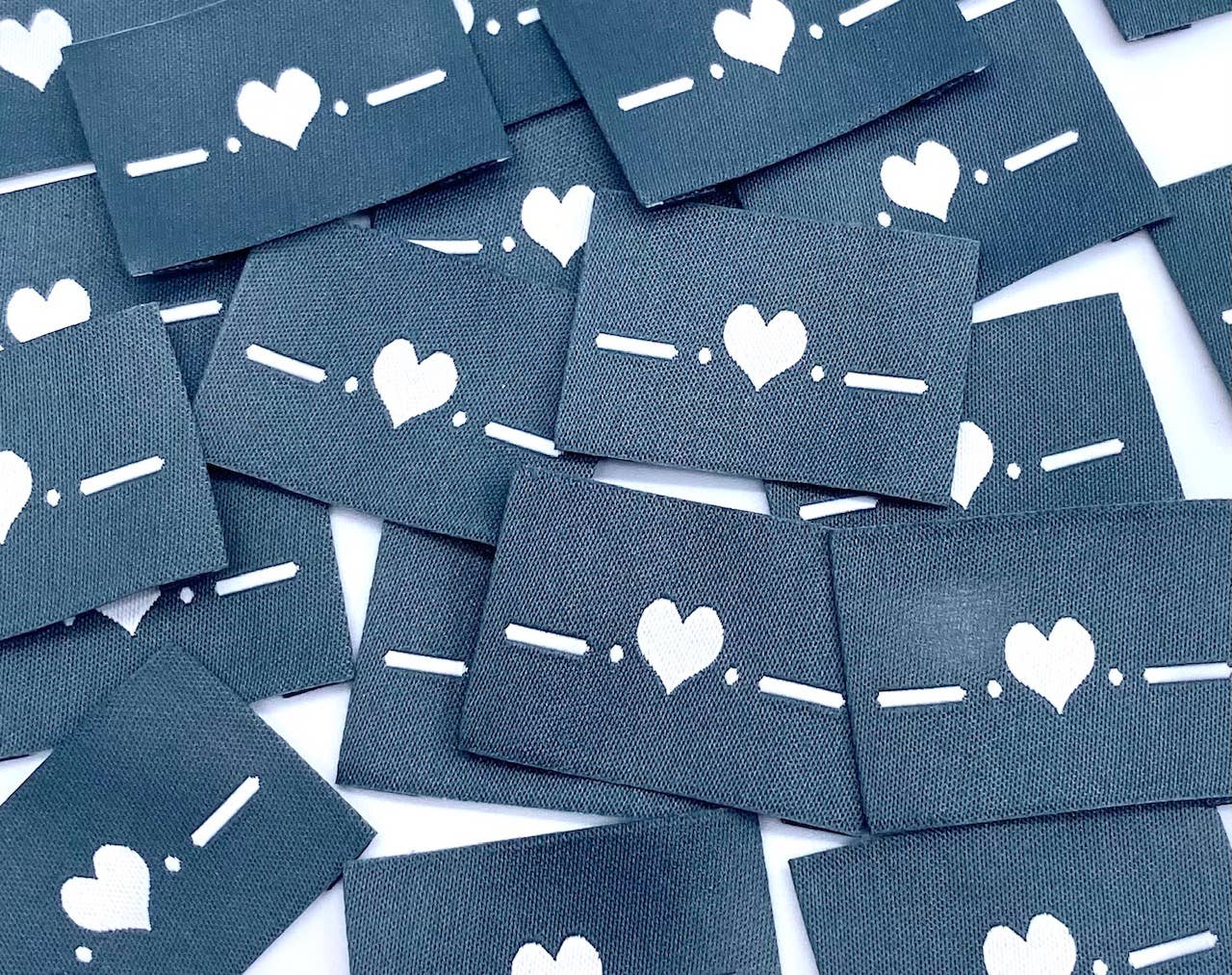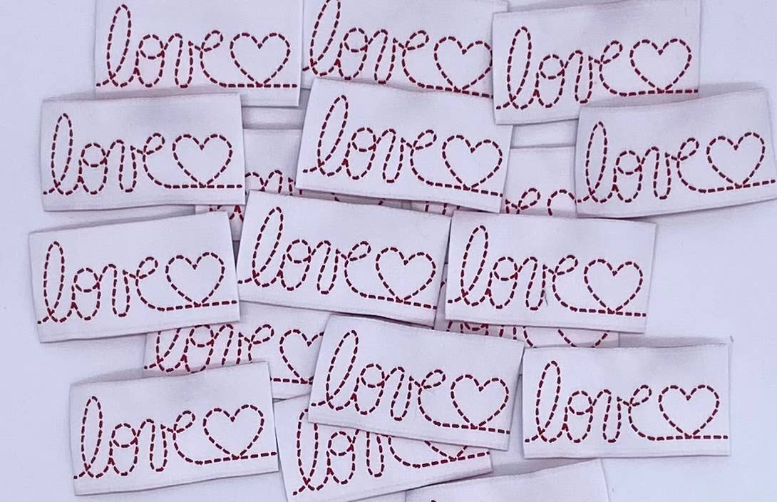 Vävda etiketter med texten "LITTLE" att sy fast på kläder. Vi älskar detaljen med det lilla röda hjärtat som ersätter prick på i:et! Etiketterna fransar inte upp sig och ger en fin avslutande touch till dina skapelser. En etikett kan dölja en fläck eller ett hål samt göra plagget personligt. Mått: 45 x 25 mm med två vikta kanter på 6 mm.