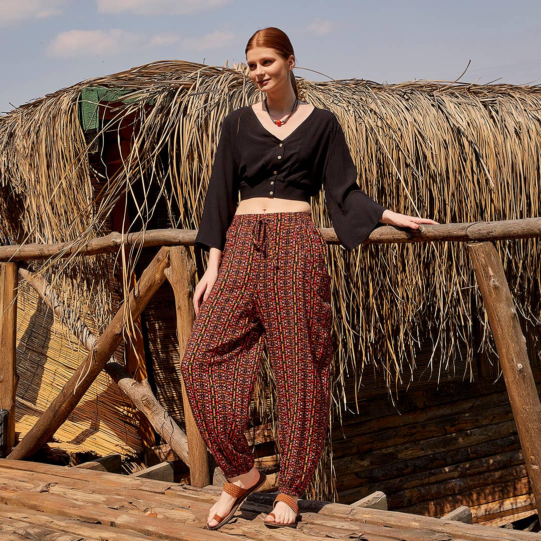 Shirred Midja Orange Mönstrade Shalwar Byxor