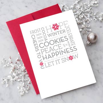 SKU: hh43 Tillverkad i USA Antal kort: 6 Färg: Röd och Silver I ett set: Enskild Mottagare: Alla Slutför: Matt Specialfunktion: Blank Säsong: Högtidssäsong Tema för tillfälle: Jul Tema: Semesterperiod Ton: Hjärtligt Produktspråk: Engelska Mått: 12,7 x 17,8 cm (5 x 7 in) Produktmaterial: Återvunnet Förpackning: Återvunnet Produktion: Drivs av förnybara energikällor