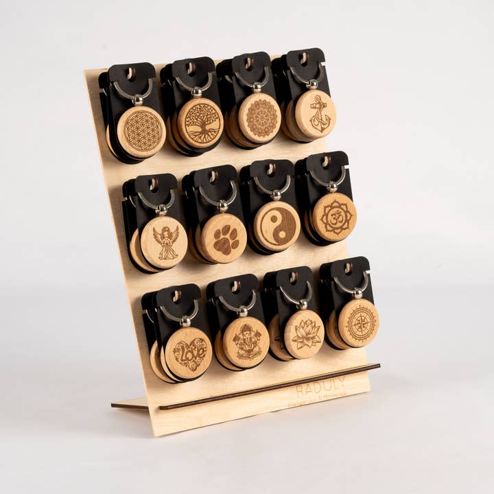 Detta suncatcher-set innehåller 15 detaljer som är laserkapade med noggrann detaljrikedom och handfyllda med bärnsten. Vid första beställningen ingår en kostnadsfri kartongdisplay i trä för att visa upp produkterna. Suncatchers är en riktig blickfångare när de hängs utanför fönstret. Setet inkluderar även två magneter för att kunna fästa dem på kylskåpet. Mått: 30 x 30 x 14 cm Nettovikt: 2 kg Material: trä och bärnsten.