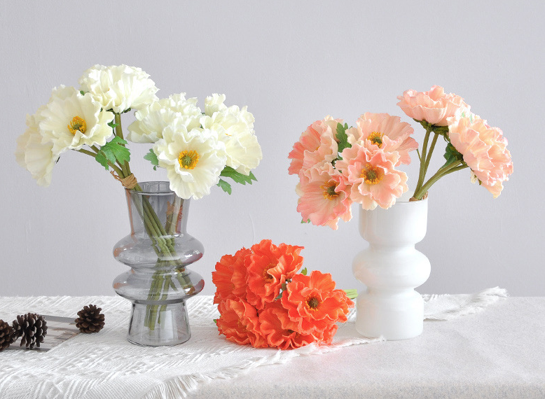 Varje stjälk är 24 tum (61 cm) lång och har tre blommor med en bredd mellan 6,4 och 10 cm samt en vallmoknopp. Materialet känns som riktiga blommor tack vare "real touch"-teknologin. Stjälkarna är flockade och delvis försedda med tråd, och kan klippas med avbitartång eller böjas efter behov.