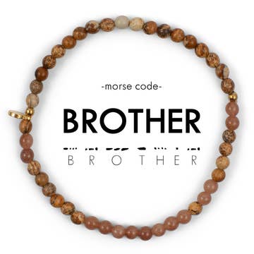 BROR En bror som ingen annan. En perfekt present för brodern i ditt liv! Detta armband finns i en förlängd storlek! Perfekt för större handleder eller män! Hur du läser ditt smycke: En Morse-kodpunkt är en pärla och ett streck är två pärlor i den alternerande färgen. Börja vid den lilla guldfärgade distanspärlan och följ Morse-kodstavningen runt armbandet! Ditt köp hjälper till att ge ekonomisk egenmakt för kvinnor som är överlevare av människohandel och exploatering. Varje smycke är handgjort av kvinnan det hjälper att anställa. Genom att bära Ethic Goods blir du en meningsfull del av hennes berättelse och ger frihet till kvinnor runt om i världen. Detaljer * Sandkvarts & Tan Picture Jasper * Längd - 7,75" | Sträcker sig till 8,5" * Handgjord med kärlek i Thailand * Tillverkad med halvädelstenar, glaspärlor, elastik och kärlek.