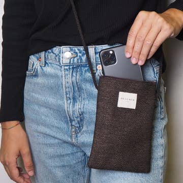 Biologiskt nedbrytbart och miljövänligt telefonväska i svart - jorden