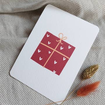 Vikbart kort 4,33" x 5,59" på linnestruktur. Detta visar min målning "Walking in a Yinzer Wonderland", som inspirerades av min mammas keramiska julby och den varma och nostalgiska känslan jag får när jag deltar i Pittsburghs Light Up Night.