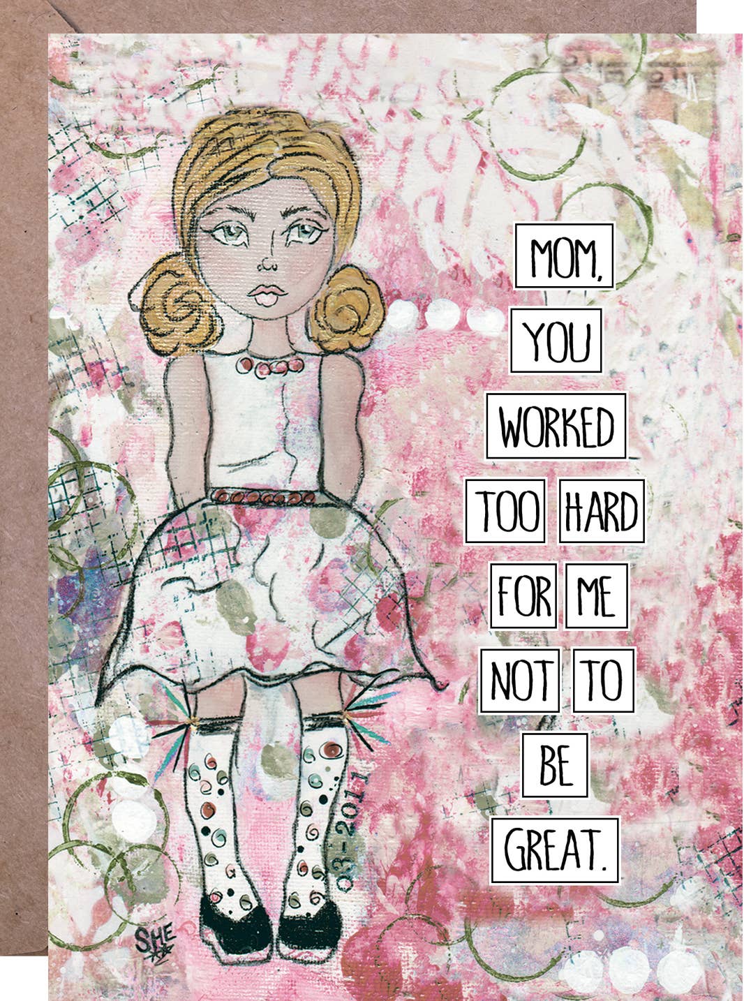 en tjej som jag... ”Min mamma lärde mig att vara någon, inte någons.” (Höger sida) - Tom (Vänster sida) - Datum & Kort Anmärkning på en FANTASTISK kvinna. ** Kika in för att lära dig mer om en inspirerande kvinna. ** - Varje kort har ett något ”dolt” datum någonstans på utskriften; datumet representerar ett datum i hennes historia att en kvinna utförde en FANTASTICAL bedrift! - Tillverkad av en original Mixed Media målning - Professionellt tryckt fullfärg på 100 lb vitt linnepapper - A2-storlek (4¼” x 5½ tum) - Inhägnad i cello ärm.