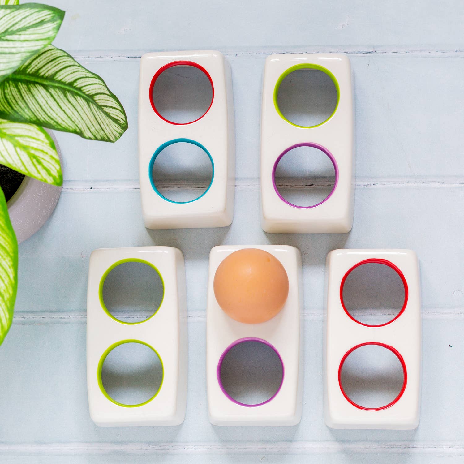 Med sin ljusa handmålade färgcirkel och unika design, våra äggkoppar kommer säkert att lysa upp din frukost! 5 cm x 5 cm x 4 cm. Levereras med Kate märkt presentförpackning.