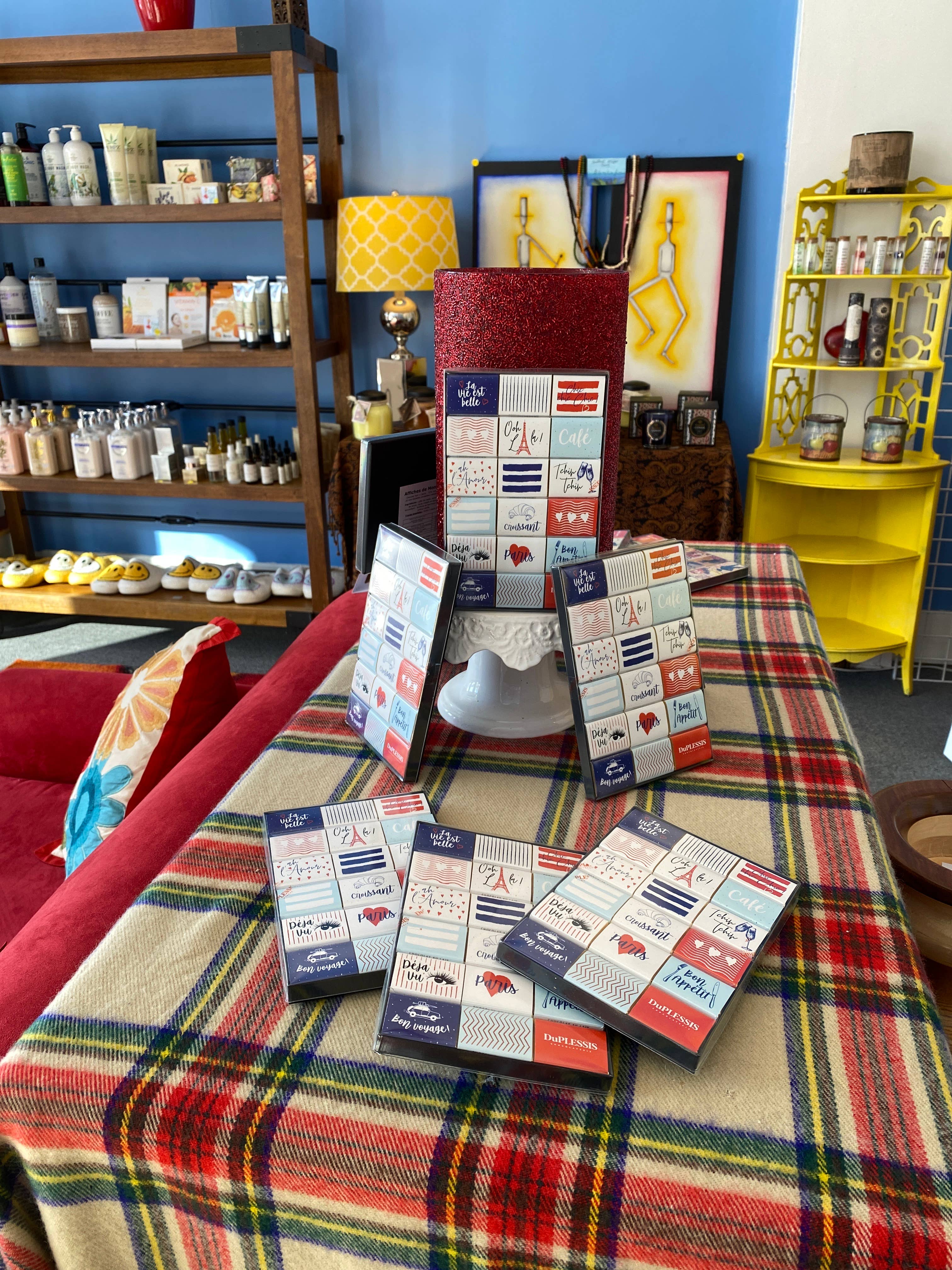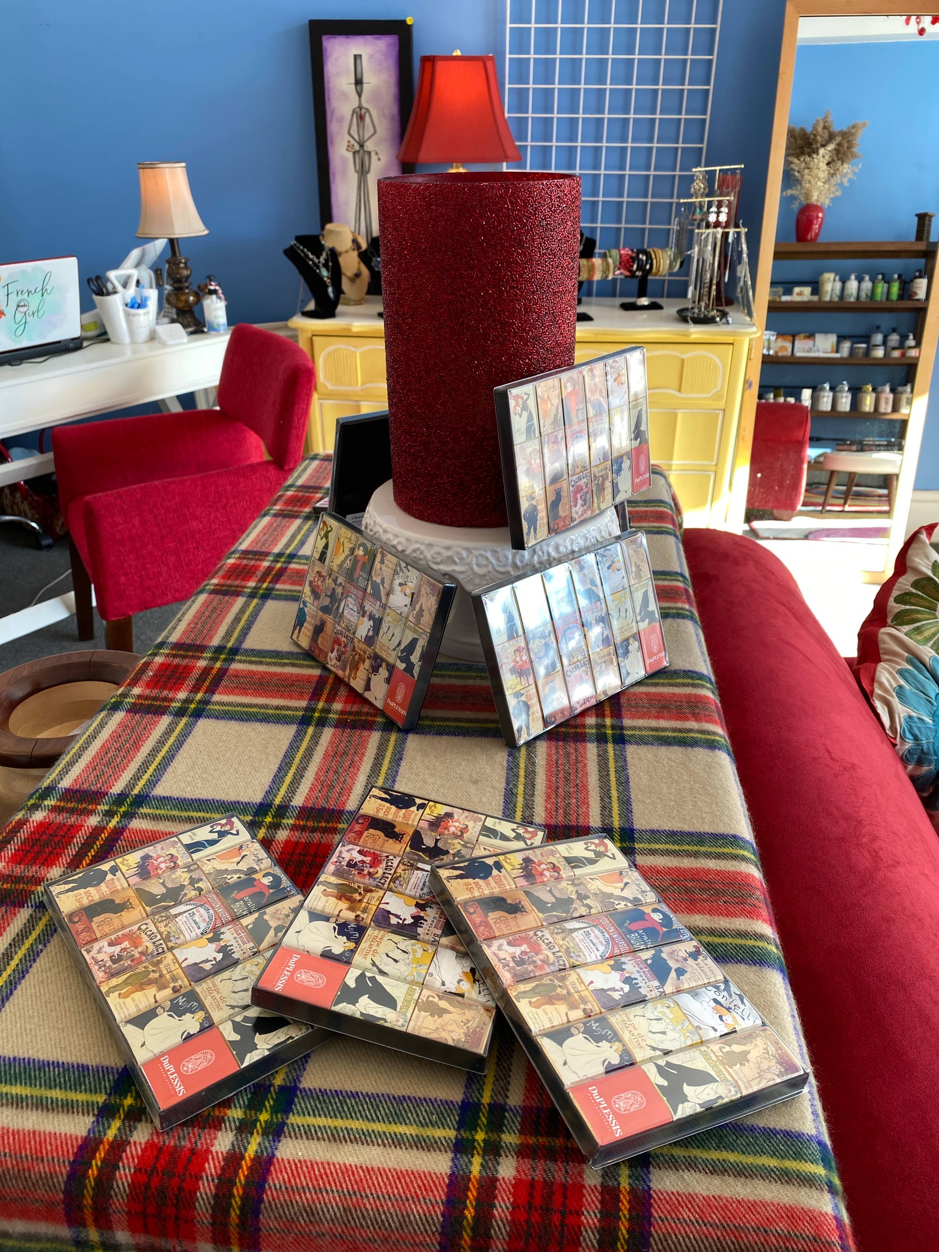 Några av våra bästsäljare i butiken! Vi älskar deras choklad och vintage-design.