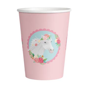 Ljusade av en explosion av fina roséguldkristallfragment, våra rosa pappersfestkoppar är perfekta för duschar, födelsedagar eller speciella sammankomster. Papperskoppar. Färger: Ljusrosa, roséguldfolie. Storlek: 9oz 8 koppar per förpackning Förpackning