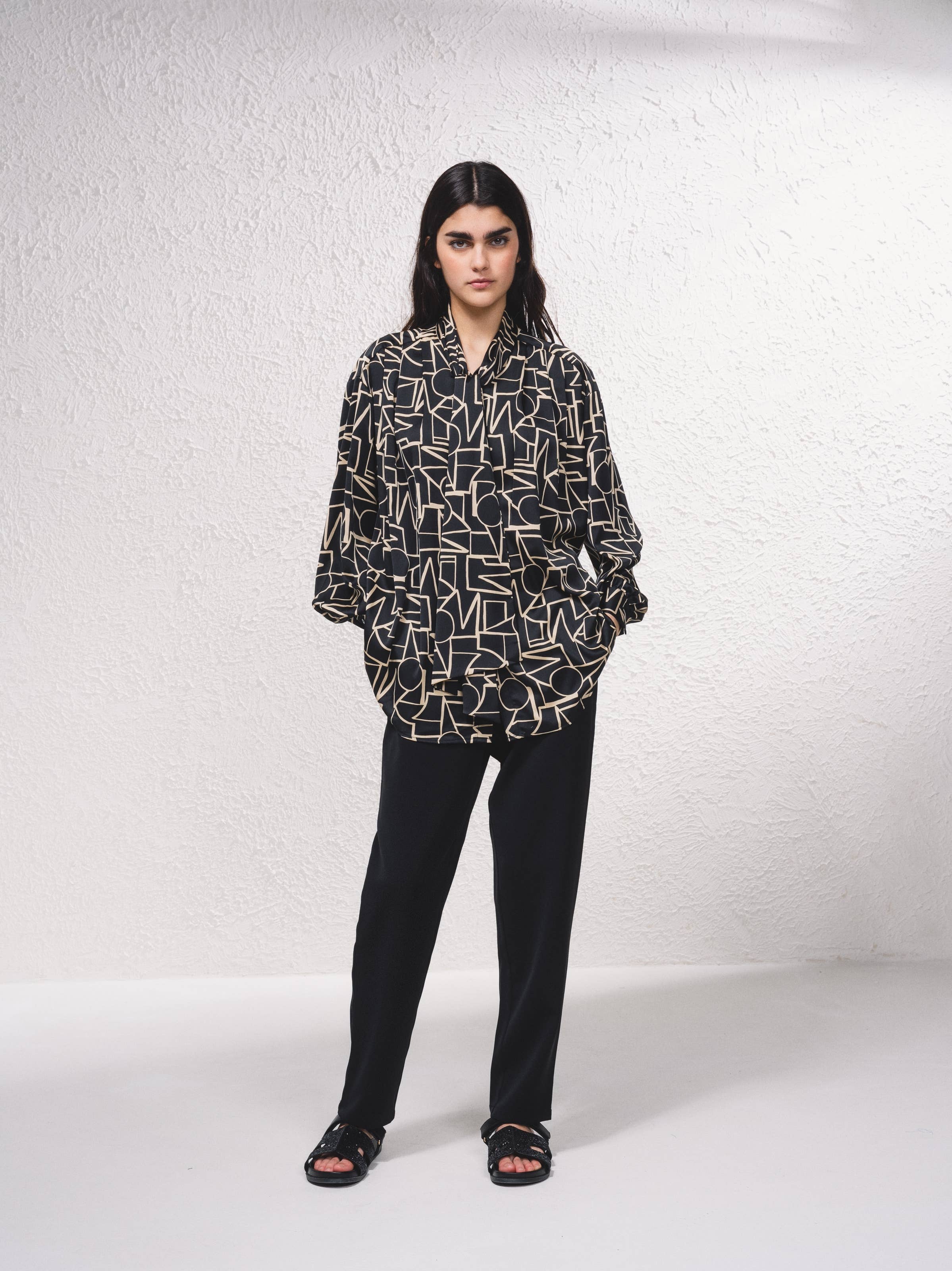 TUNIKA MED SPETSKANTADE ÄRMAR-4480 SVART