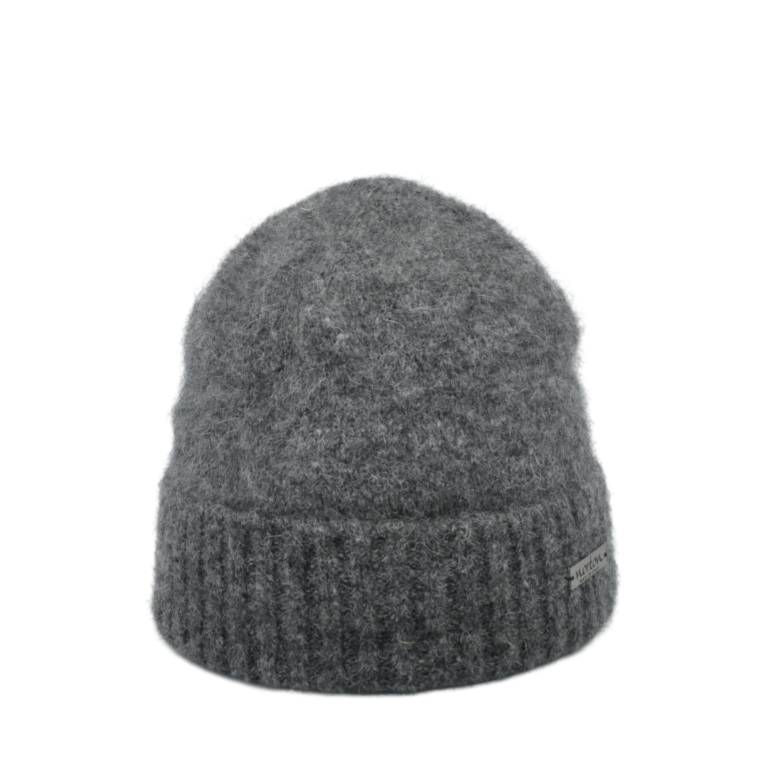 Svart mössa med orange detaljer. Härligt varm för vintern.