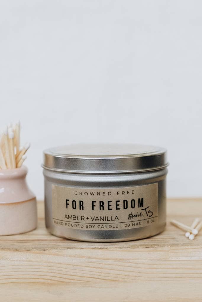 Vaniljlatte Ytterligare produktdetaljer: -Tillverkad i Michigan av överlevare av människohandel och ungdomar i riskzonen -8 oz. -Handgjuten sojaljus tillverkat av sojabönor odlade i USA -Ljuset innehåller inget palmvax, petroleum, paraffin, ftalater eller färgämnen -Bomullsflätad veke med invävda papperstrådar som är bly- och zinkfria -Silverburk tillverkad av stål -28 timmars brinntid -Ljuset är gjort med en naturlig blandning av eteriska oljor -Doftnoter: Kaffe, karamell, vanilj, socker På ett uppdrag att stoppa människohandel genom etiskt mode och gåvor. På Crowned Free är vi engagerade i att öka medvetenheten, tillhandahålla säkra och hållbara jobb för att stärka överlevare, välja etisk upphandling för våra produkter och ge tillbaka till organisationer mot människohandel både lokalt och globalt.