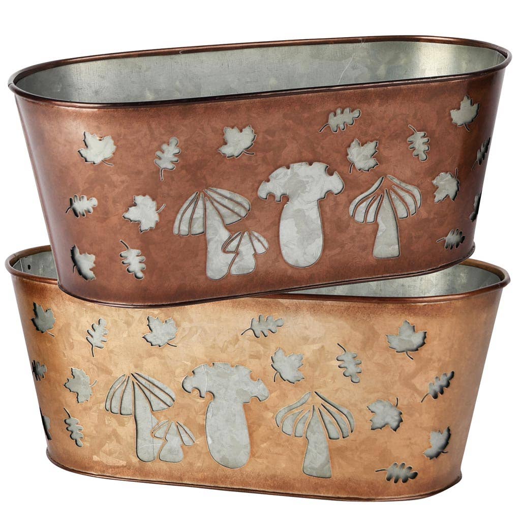 Rund blomkruka med pumpor, grön metall, 18x13x13 cm