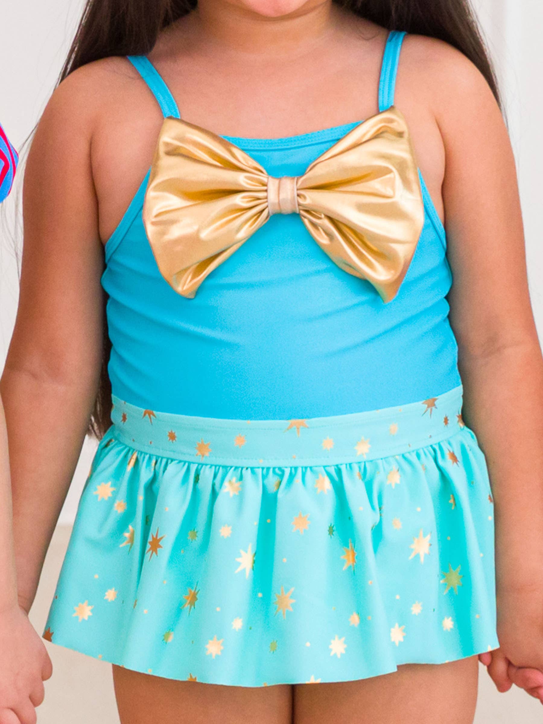 Flickors kungligt rosa prinsessklänning baddräkt i ett stycke