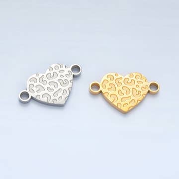 Djurmönstrad hjärtkoppling i rostfritt stål med gepardmönster i guld och silver | F104