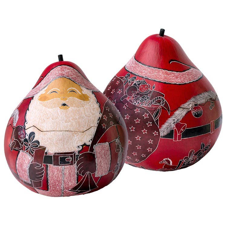 Den handformade och handmålade krubban gjord av potatisdeg inuti dessa snidade kalebassprydnader har gjort dem till en favorit året runt! Specifikationer: 7,5–9 cm. Varje exemplar är unikt. Storlek, form och färg varierar. Blandade motiv.