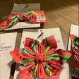 Jag köpte ursprungligen från Charlotte’s Pet för att hålla mig till mitt varumärke av "handgjort i USA", villig att betala några cent mer per artikel för att stödja en medentreprenör. Det tog lite längre tid att få beställningen, men när lådan kom blev jag helt överväldigad!! Kvaliteten och hantverket är långt överlägset andra liknande produkter där ute! Sättet hon monterar och säkrar halsbandsblommorna på är fantastiskt och kronbladen har faktiskt dimension och djup! Flugorna är också perfekt samlade! Jag är fast.