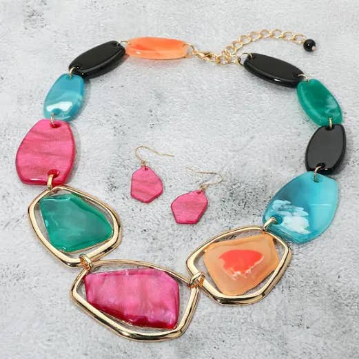Oval stenprydd halsband med statement • Halsbandsstorlek: 16" + 3" L • Dekorstorlek: 3,75" L • Örhängesstorlek: 1,5" L • Bly- och nickelkompatibel