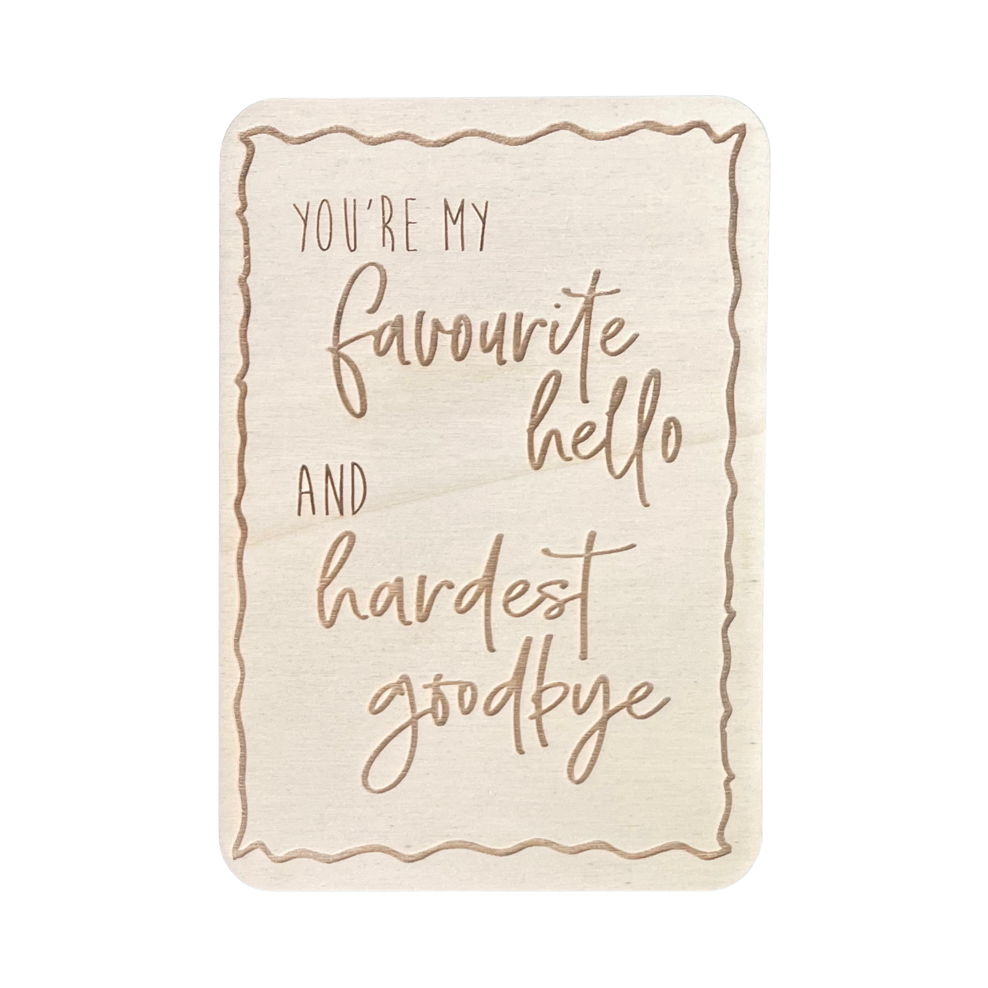 Klicka här för kortdetaljer VÄNLIGEN NOTERA: * Dessa kort är handgjorda av naturligt trä och därför kommer de att ha märken och imperfektioner som följer med en naturlig, handgjord produkt. - DESIGNAD & TILLVERKAD I SYDNEY, AUSTRALIEN - KORT, STÄLL & KUVERT INGÅR - TILLVERKAD AV HÅLLBART, EKO-CERTIFIERAT 3mm PLYWOOD - OMSORGSFULLT FÖRPACKAD MED ÅTERVINNINGSBARA PRODUKTER DÄR DET ÄR MÖJLIGT
