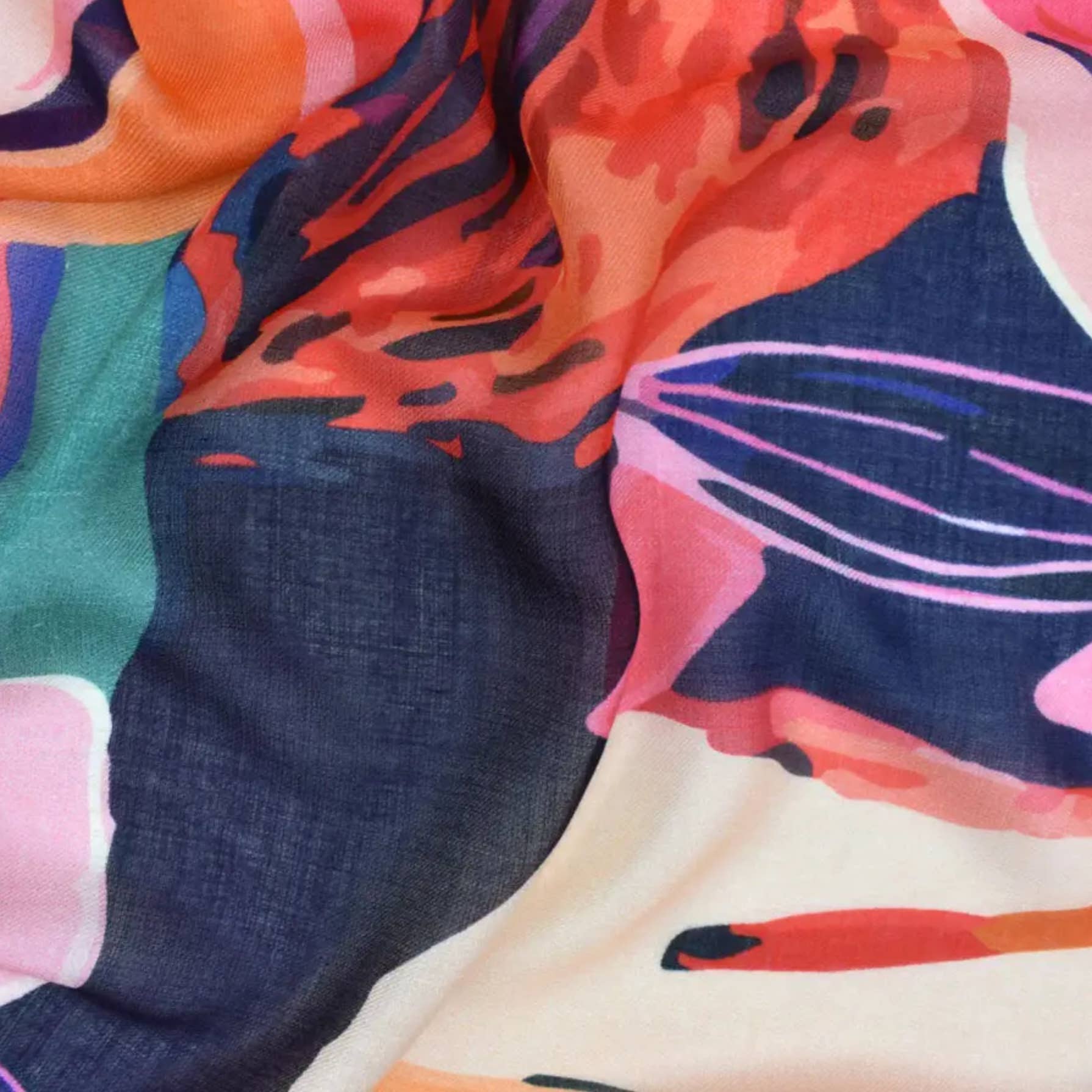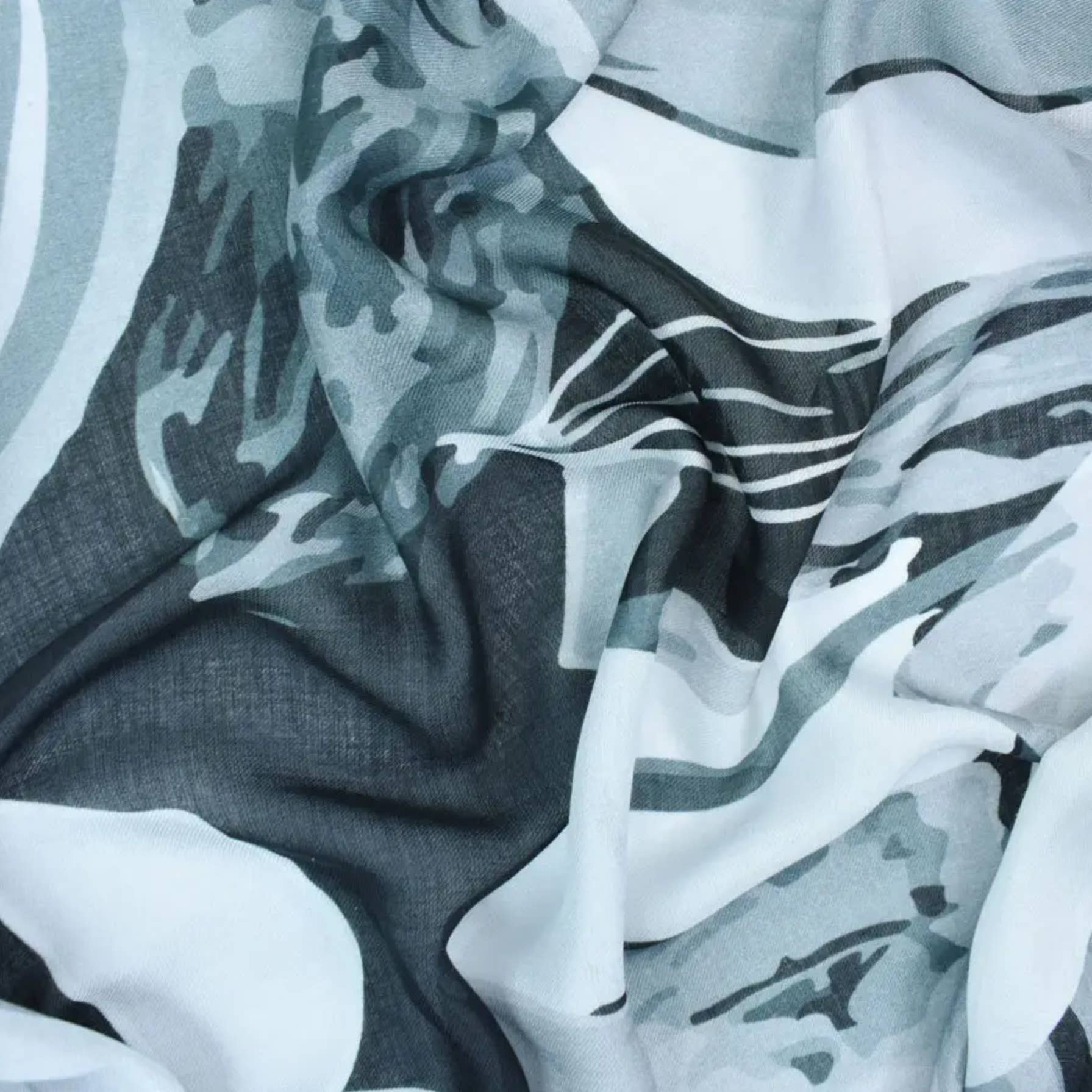 Stora akvarellfläckar trycks digitalt på en mjuk, handvävd ullsjal och accentueras med tunt metallgarn och olika pärlor. Denna unika halsduk känns som ett riktigt konstverk och är något speciellt att se. Tyg: 100% Ull Storlek: 23.5 ”x 71" Skötsel: Endast kemtvätt