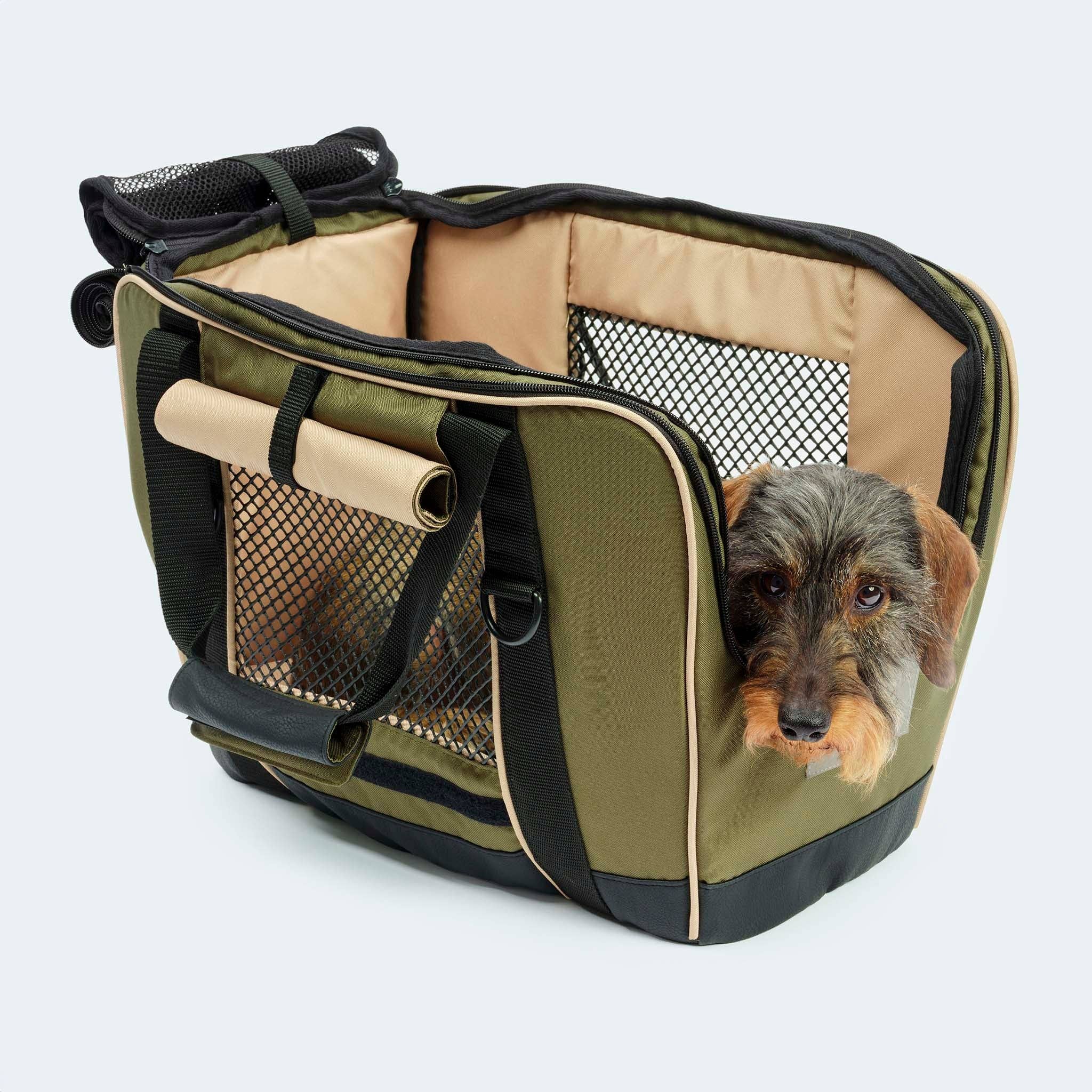 Flygväska för taxar och små hundar med ortopedisk madrass