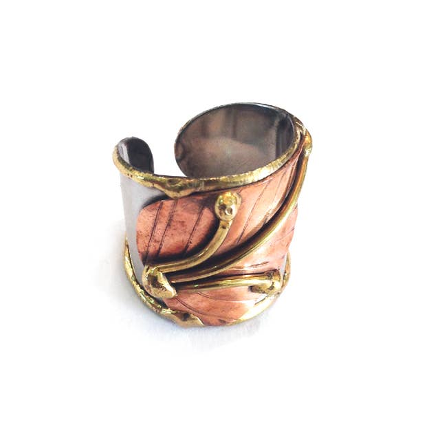 Introducera dina kunder till den vackert handgjorda ringen som framhäver den perfekta balansen mellan tradition och tidlös design. Tillverkad av skickliga hantverkare i Indien, formas och avslutas varje del för hand, vilket framhäver den naturliga skönheten hos blandade metaller. Blandningen av varm koppar, rik mässing och sval rostfritt stål skapar ett distinkt, högkvalitativt utseende som enkelt passar med ett brett utbud av smyckeskollektioner. Viktiga detaljer: Handgjord av hantverkare i Indien Tillverkad av mässing, koppar och rostfritt stål för hållbarhet och bestående glans Lätt och bekväm, med en justerbar design för enkel passform. Bly- och kadmiumfri. Ett mångsidigt statement-smycke som kompletterar både avslappnad och elega