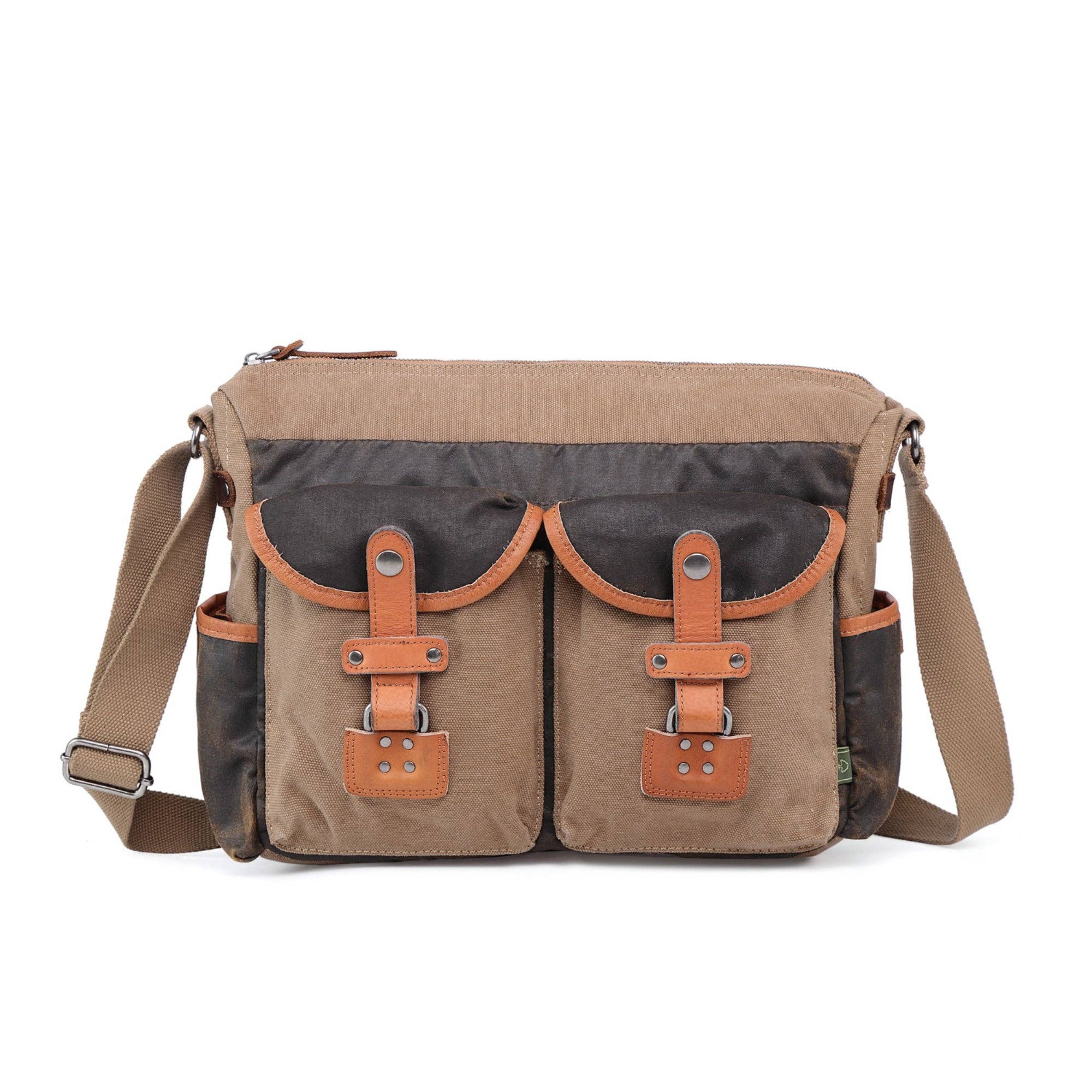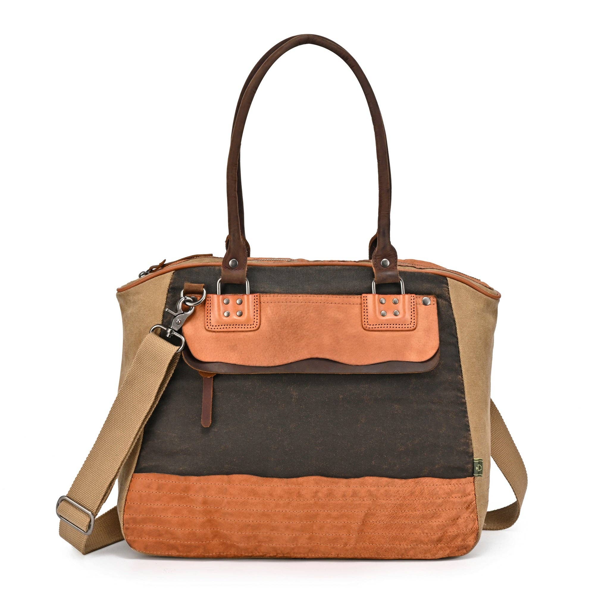 PRODUKTBESKRIVNING Upptäck höjden av hållbar elegans med vår Turtle Ridge Canvas Tote, en harmonisk blandning av funktionalitet och stil, handgjord för dem som uppskattar skönheten i hantverksmässiga detaljer. Denna tote är inte bara en väska; det är en mångsidig följeslagare för den dagliga pendlaren, helgresenären och den miljömedvetna fashionistan. Tillverkad av robust 100% bomullscanvas och berikad med 100% äkta läderdetaljer, förkroppsligar denna tote en förening av motståndskraft och sofistikering. Turtle Ridge Canvas Totes design fångar essensen av ett målmedvetet liv på språng. Dess iögonfallande struktur är perfekt för en mängd olika tillfällen, från livliga stadspendlingar till lugna helgresor. Väskans hållbara bomullscanvasmaterial garanterar en robust men flexibel form, kapabel att klara av de krav som daglig användning ställer samtidigt som den behåller sin tidlösa attraktionskraft. Varje läderdetalj är noggrant placerad för att förbättra totens styrka och för att ge en touch av klassisk skönhet som mognar graciöst. Miljöansvar är invävt i varje aspekt av Turtle Ridge Canvas Tote. Användningen av 100% återvunnet nickel-fritt hårdvara står som ett bevis på vårt engagemang för att minska miljöpåverkan, vilket säkerställer att ditt modeval är lika ansvarsfullt som det är stiligt. Dessutom bidrar de 100% vegetabiliska basfärgerna till en rik, miljövänlig färgpalett som kompletterar varje ensemble. Våra hantverkares engagemang för kvalitet är uppenbart i den noggranna handtillverkningen av varje tote, vilket gör varje del till ett unikt uttryck för hantverksskicklighet. Huvuddragkedjan säkrar dina tillhörigheter, medan justerbara handtagsremmar erbjuder mångsidighet i bärandet. Den avtagbara myntfickan ger bekvämlighet och organisation, och nyckelringen säkerställer att dina nycklar alltid är tillgängliga. Totet har en mängd fickor: två knappsidor, en knapp framtill och en bakre dragkedjeficka på utsidan, tillsammans med flera innerfickor designade för att hålla dina saker välordnade och lättillgängliga. PRODUKTFUNKTIONER * Tillverkad av högkvalitativ 100% bomullscanvas för långvarig användning. * Utsmyckad med 100% äkta läderdetaljer för en elegant finish. * Utrustad med 100% återvunnet nickel-fritt hårdvara för en miljövänlig touch. * Färgad med 100% vegetabiliska basfärger, som visar djupa, naturliga toner. * Exklusivt handgjord, erbjuder oöverträffad kvalitet och unikhet. * Säker huvuddragkedja för att hålla dina tillhörigheter säkra. * Mångsidiga justerbara handtagsremmar för en bekväm bärning. * Levereras med en avtagbar myntficka för extra organisation. * Yttre och inre fickor, inklusive en nyckelring, för noggrann organisation. PRODUKTMÅTT * Bredd: 14 tum * Höjd: 15,5 tum * Djup: 5 tum * Handtag Drop: 10 tum, justerbar för en personlig passform. STIL # TSD319416