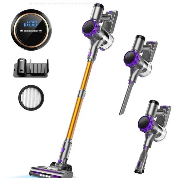 Denna sladdlösa dammsugare har en 6-i-1 design med en kraftfull 350W motor som ger 30Kpa sugkraft. Den fungerar utan påse och använder en 1-2 liters dammbehållare med cyklonfilter för effektiv dammuppsamling. Li-ion-batteriet ger 30 till 59 minuters drifttid, vilket möjliggör trådlös städning i både vertikala och handhållna konfigurationer. Utrustad med en till tre munstycken, inklusive en multifunktionell kombinationsborste och turboborste, erbjuder den mångsidiga städalternativ. Dammsugaren drivs på 100-240V, väger mellan 3 till 6 kg och inkluderar en US-kontakt utan vikbar adapter.