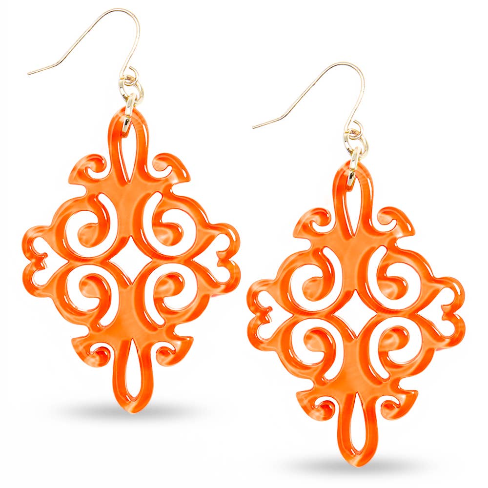 Harts drop örhängen i en cirkulär våg mönster med fisk krok tillbaka. -Fisk Krok -Längd: 2 ” -Diameter: 1.5 ” -Nickel- och blykompatibel (hypoallergen)